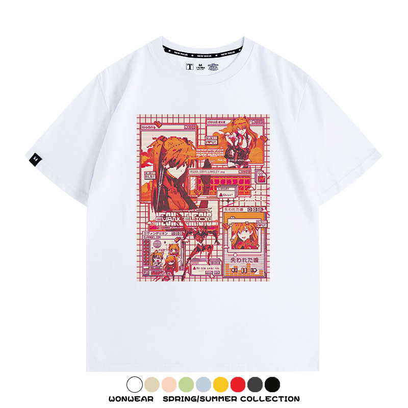 Pixel style retro EVA anime Asuka trendy brand peripheral cotton short-sleeved tops T-shirts are loose and versatile in summer