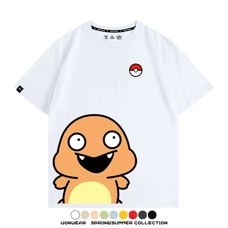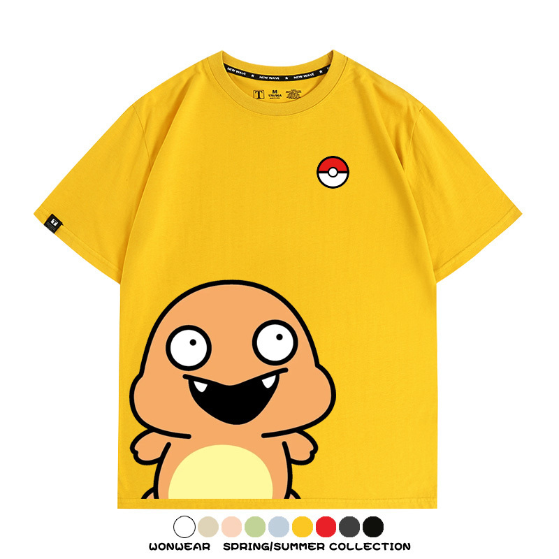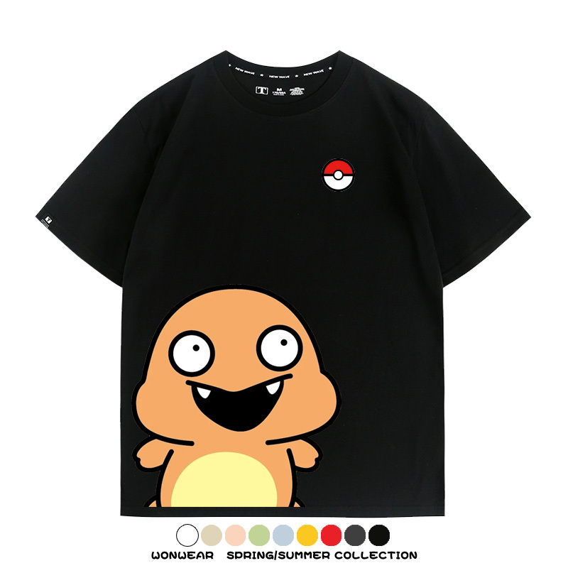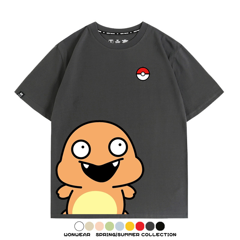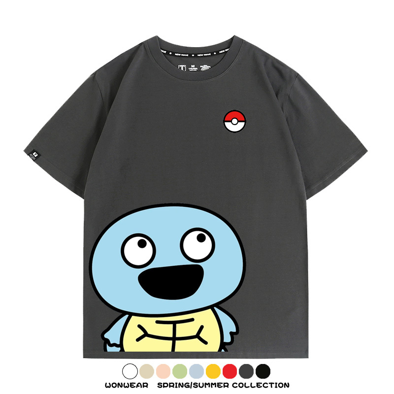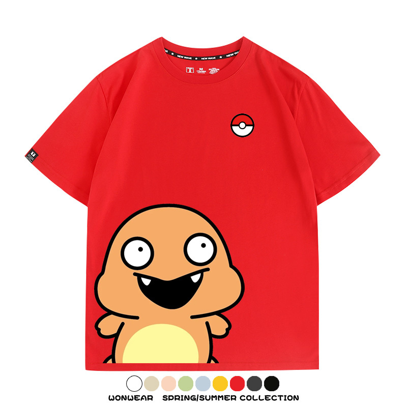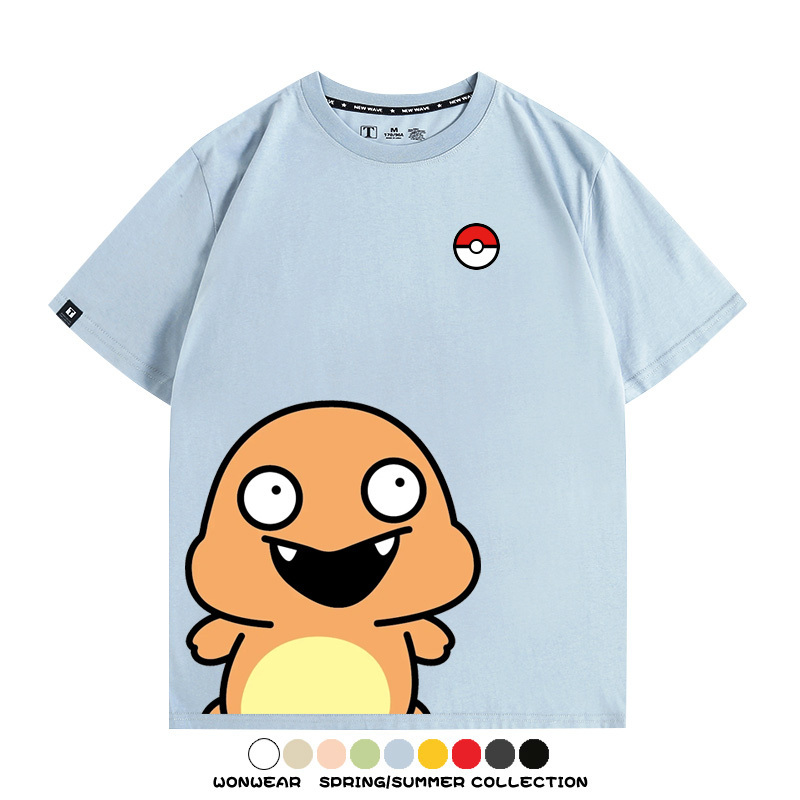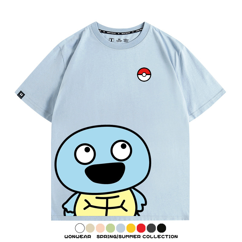Pokémon Cute Silly Expression Charmander Squirtle Game Peripheral Couple Short Sleeve Cotton T-shirt Summer Men's Trend