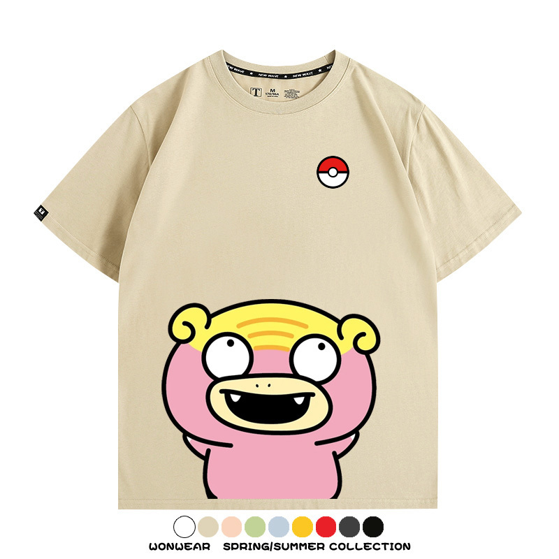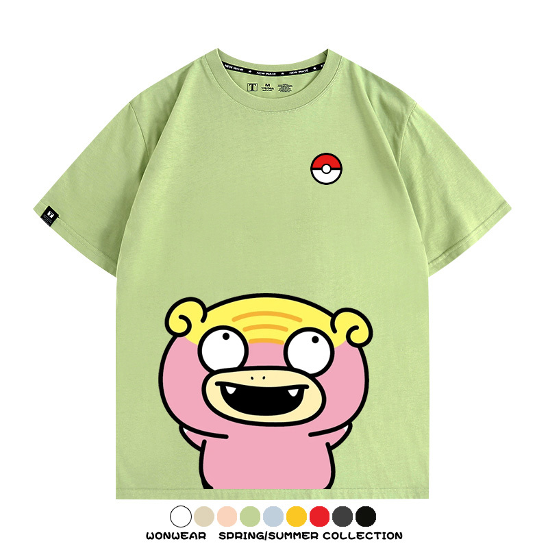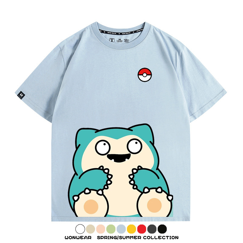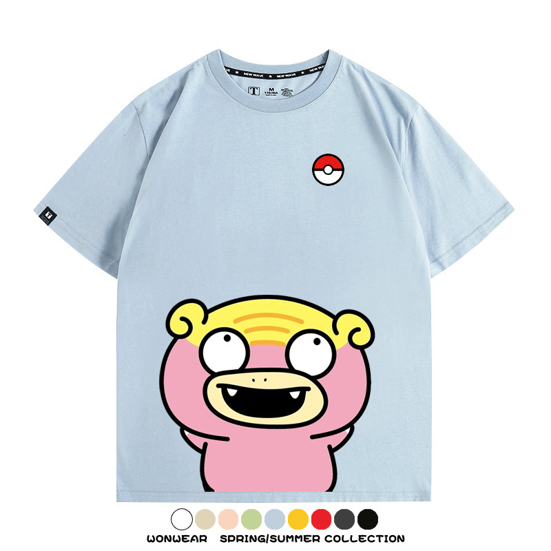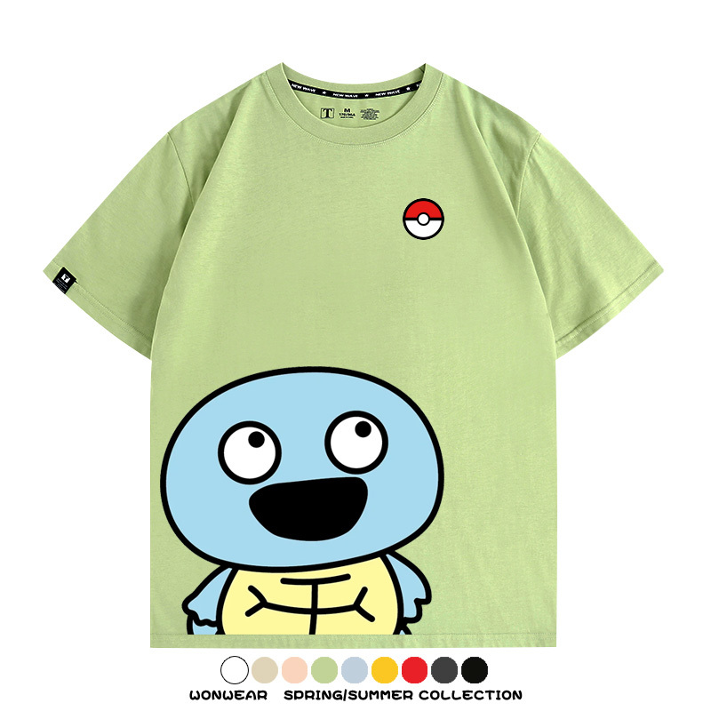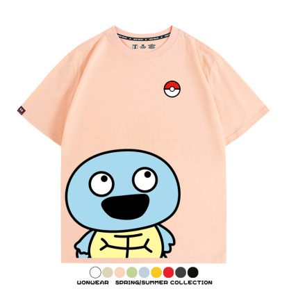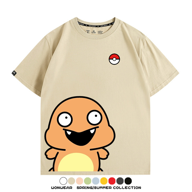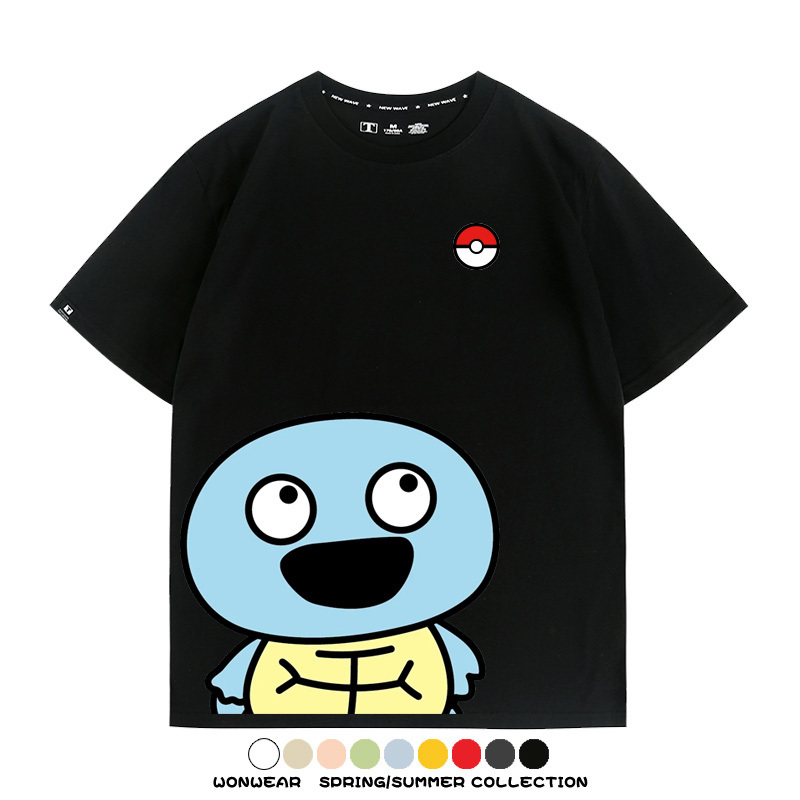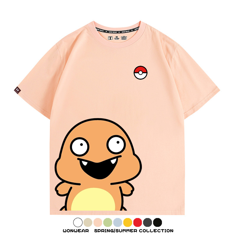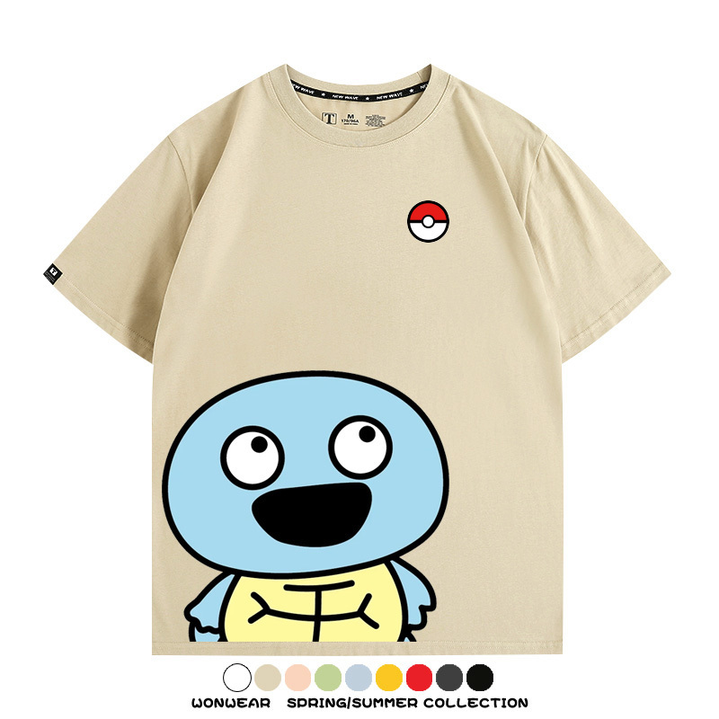 Pokémon Cute Silly Expression Charmander Squirtle Game Peripheral Couple Short Sleeve Cotton T-shirt Summer Men's Trend