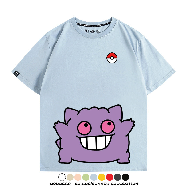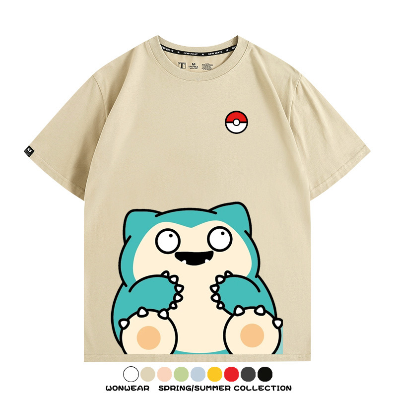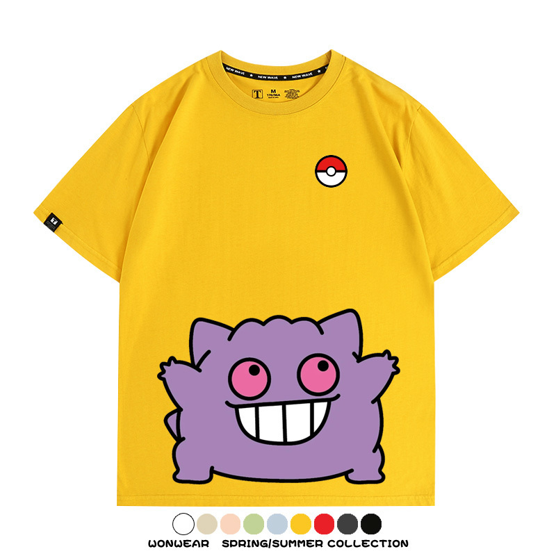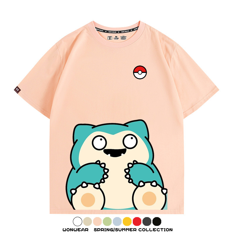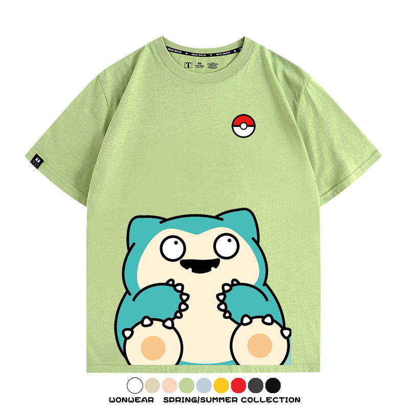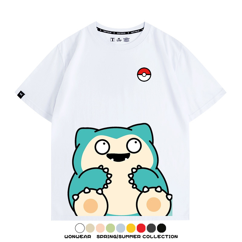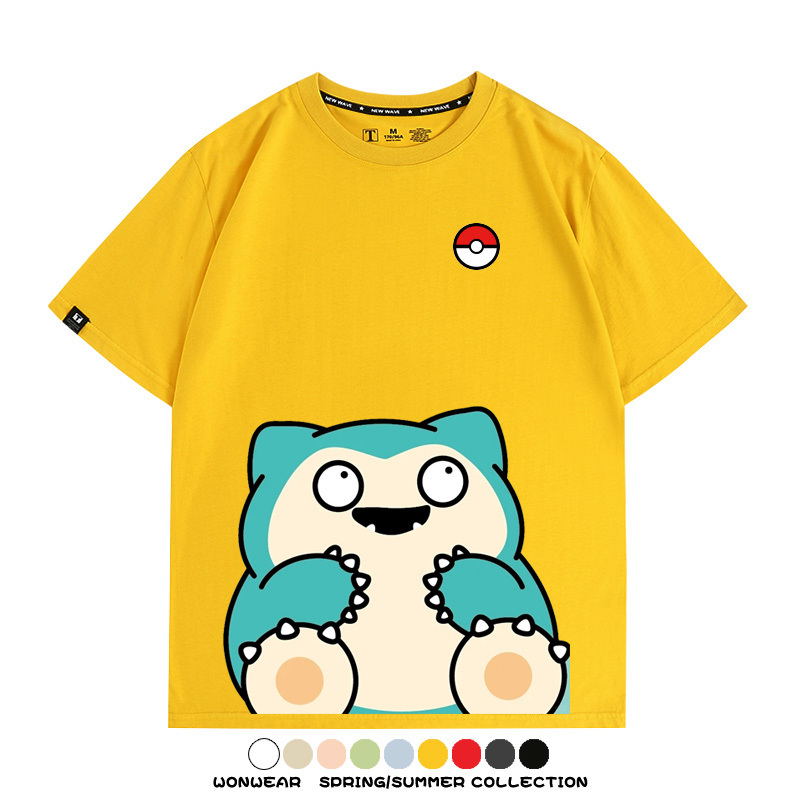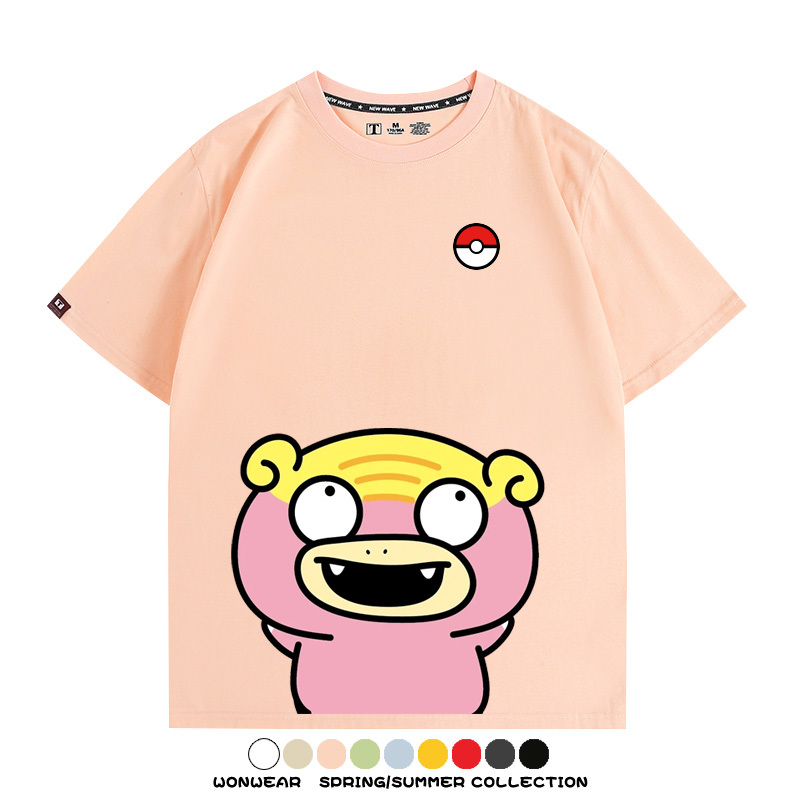 Pokémon Cute Silly Expression Charmander Squirtle Game Peripheral Couple Short Sleeve Cotton T-shirt Summer Men's Trend