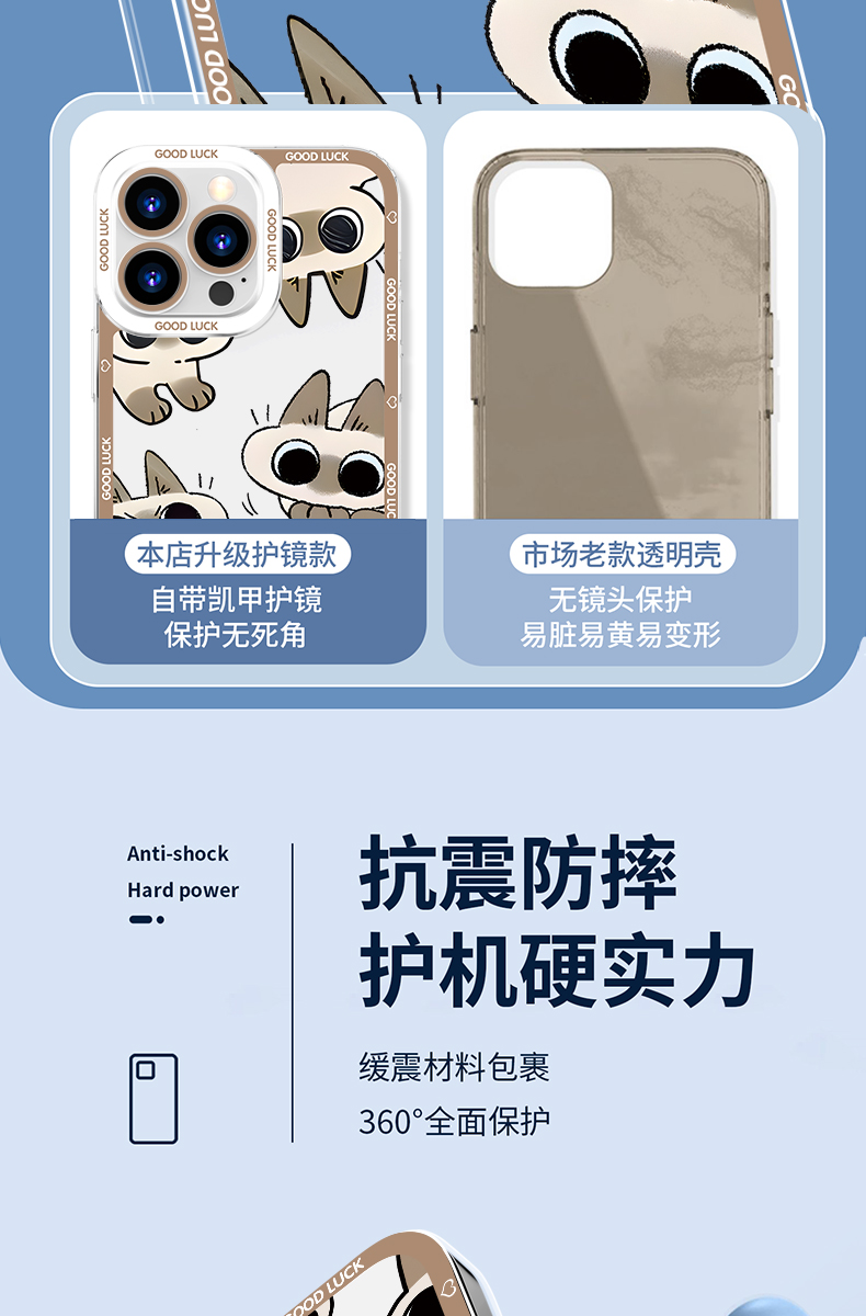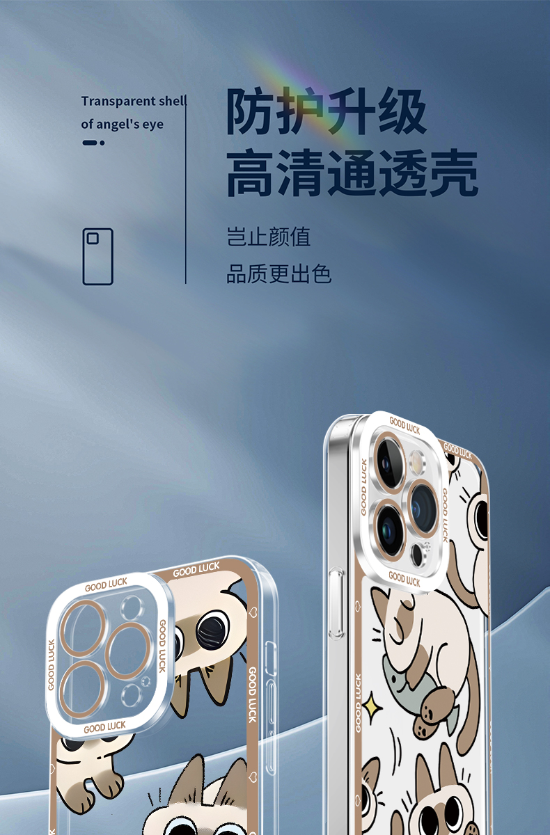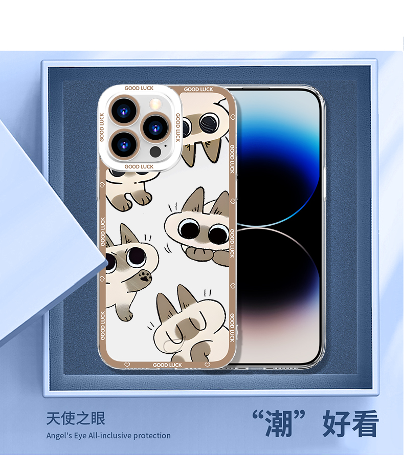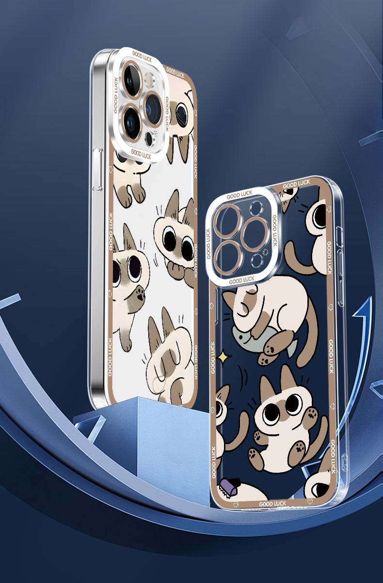 Apple Series Red Bean Paste Siamese Cat Angel Eyes Transparent Anti-fall Soft Case