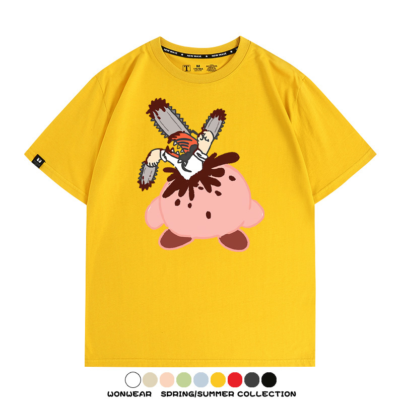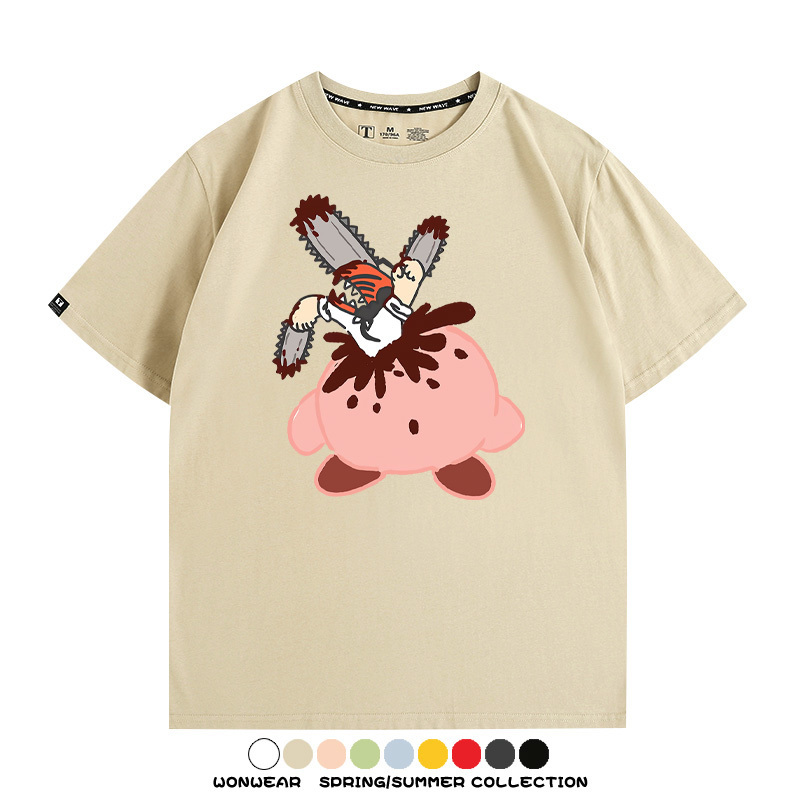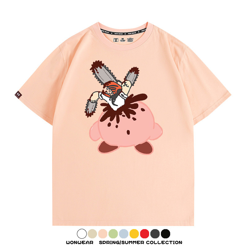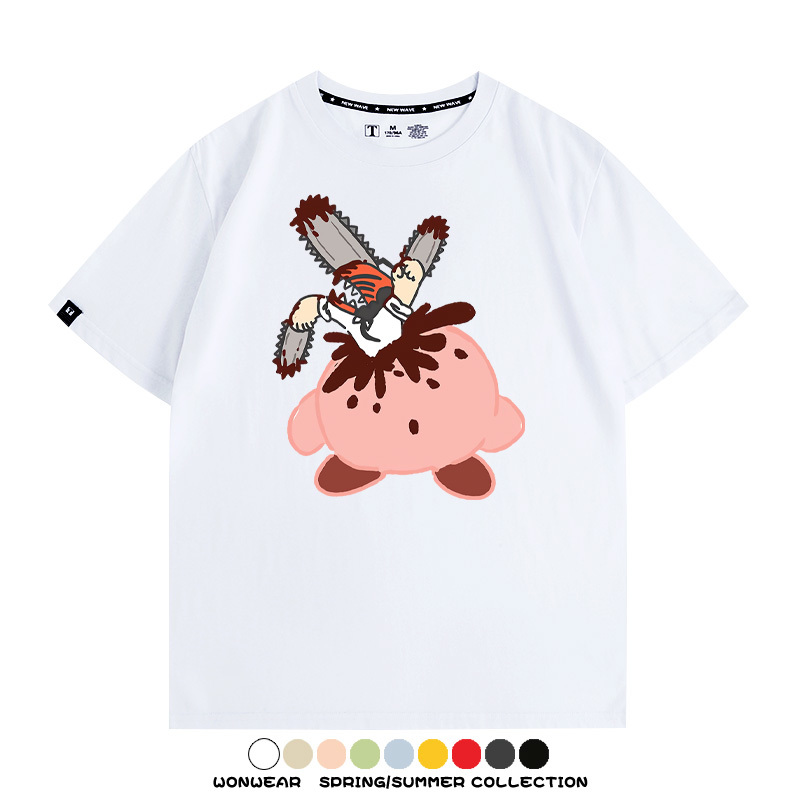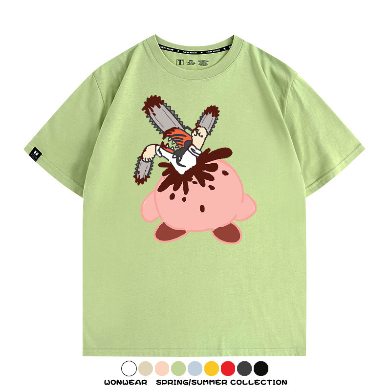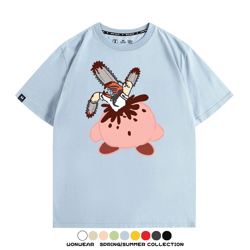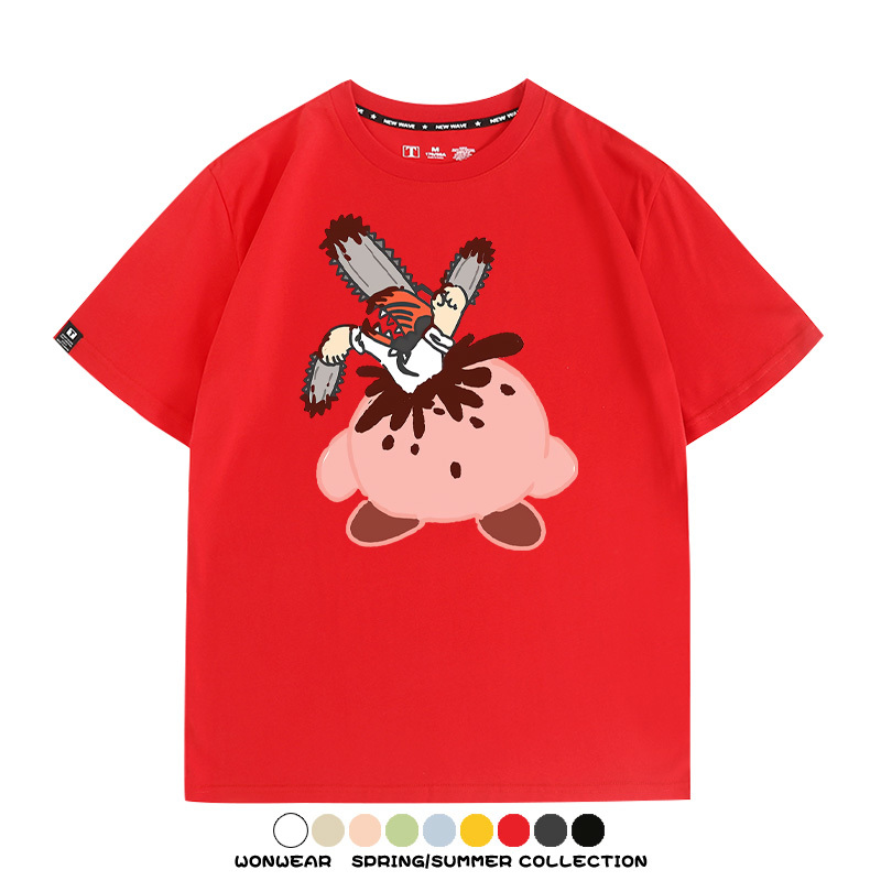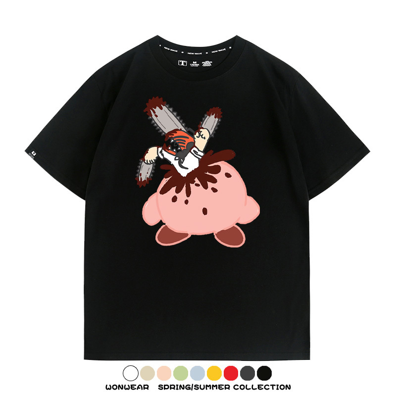 Kirby co-branded Chainsaw Man and Bochita cartoon couple outfit short-sleeved tops anime peripheral t-shirts for men