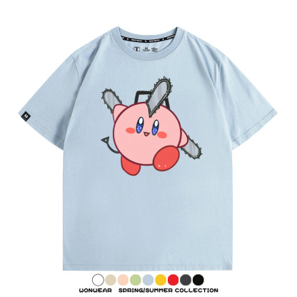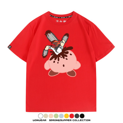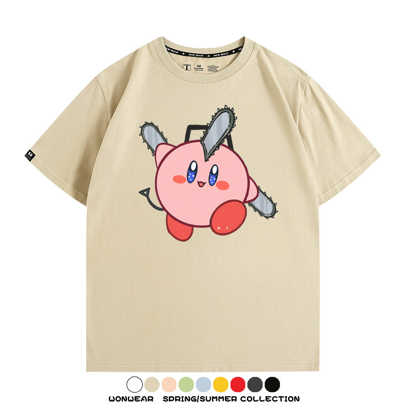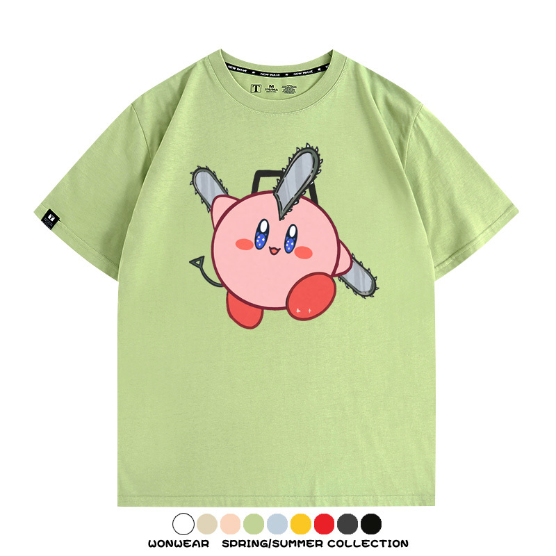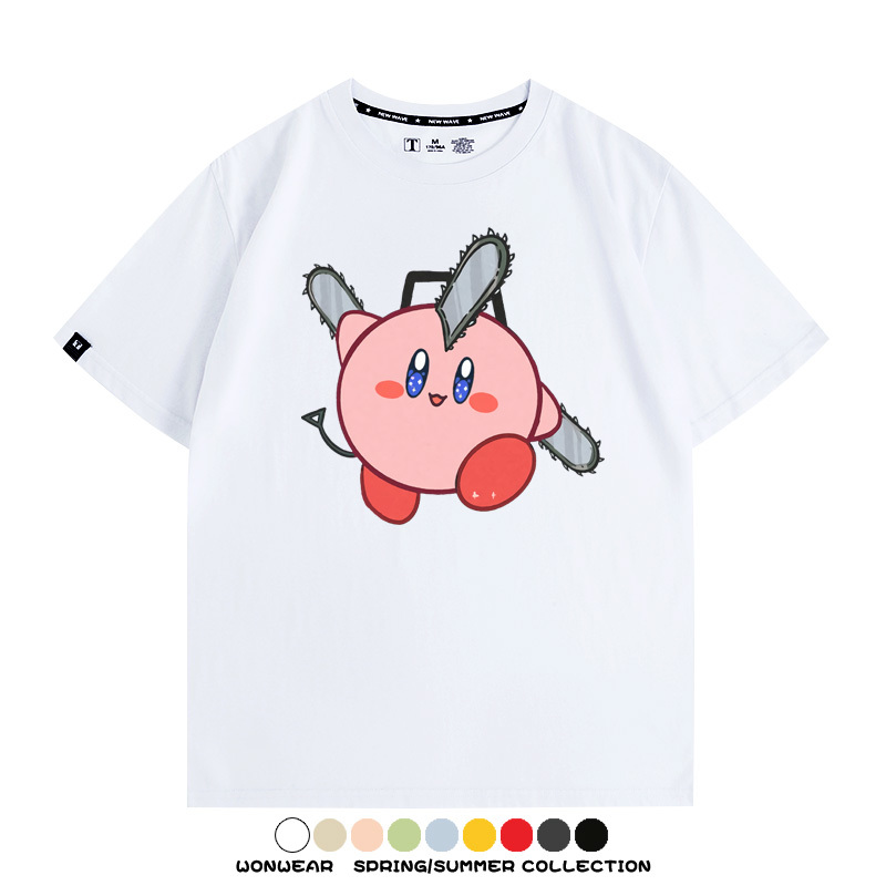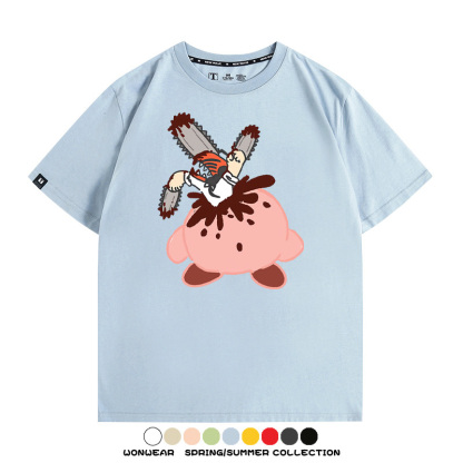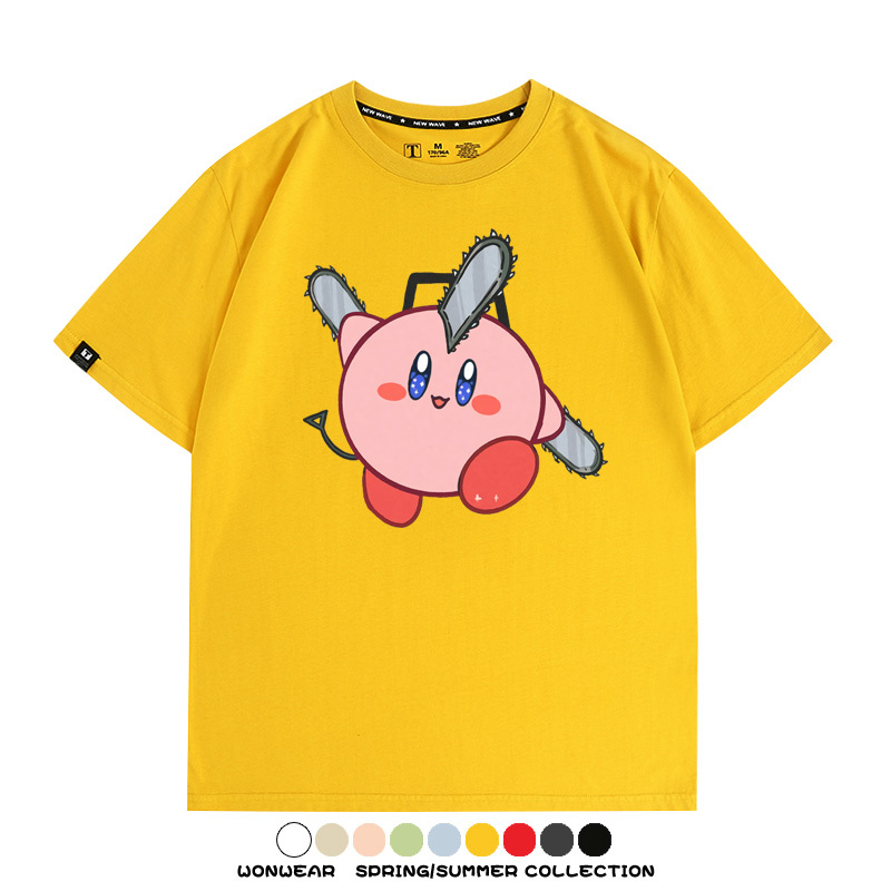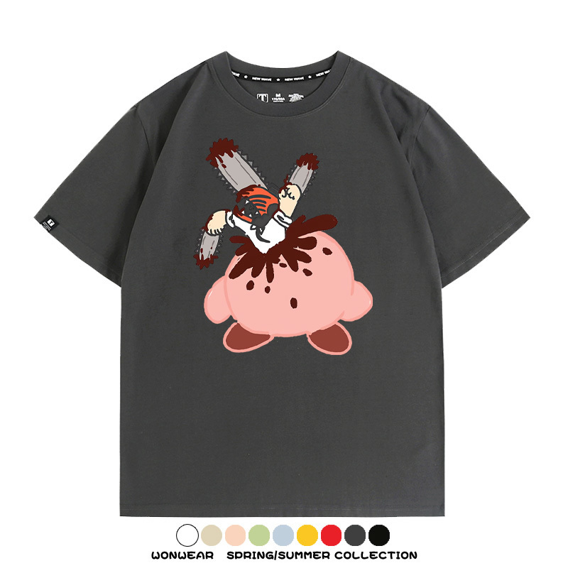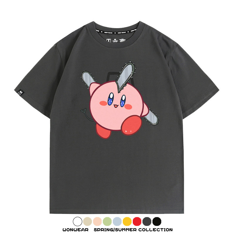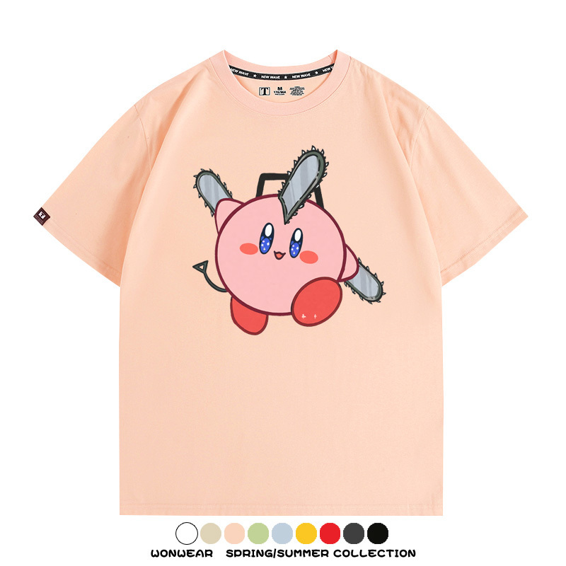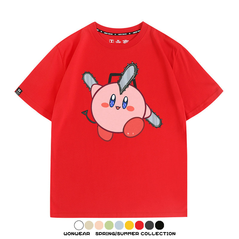 Kirby co-branded Chainsaw Man and Bochita cartoon couple outfit short-sleeved tops anime peripheral t-shirts for men