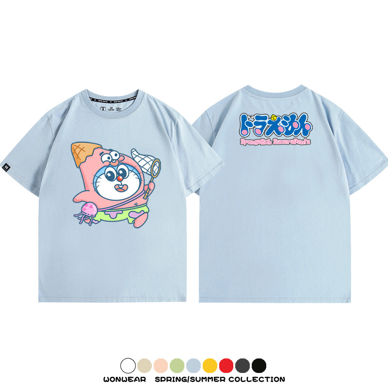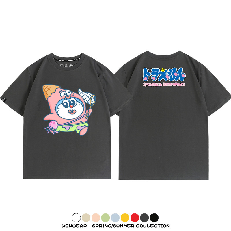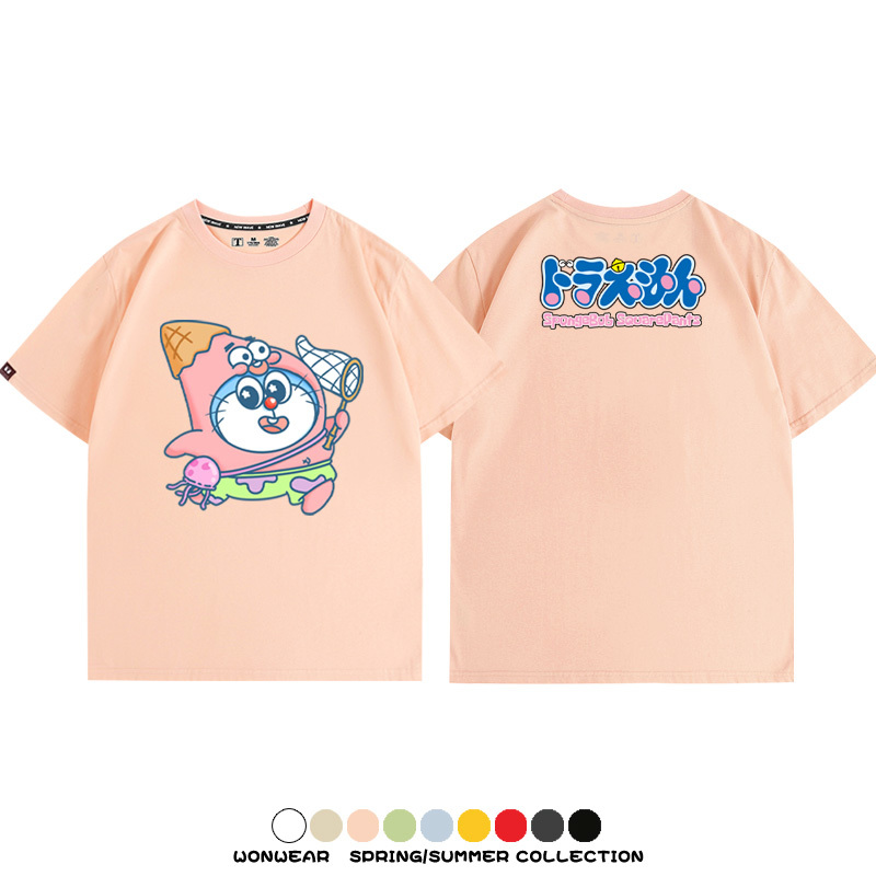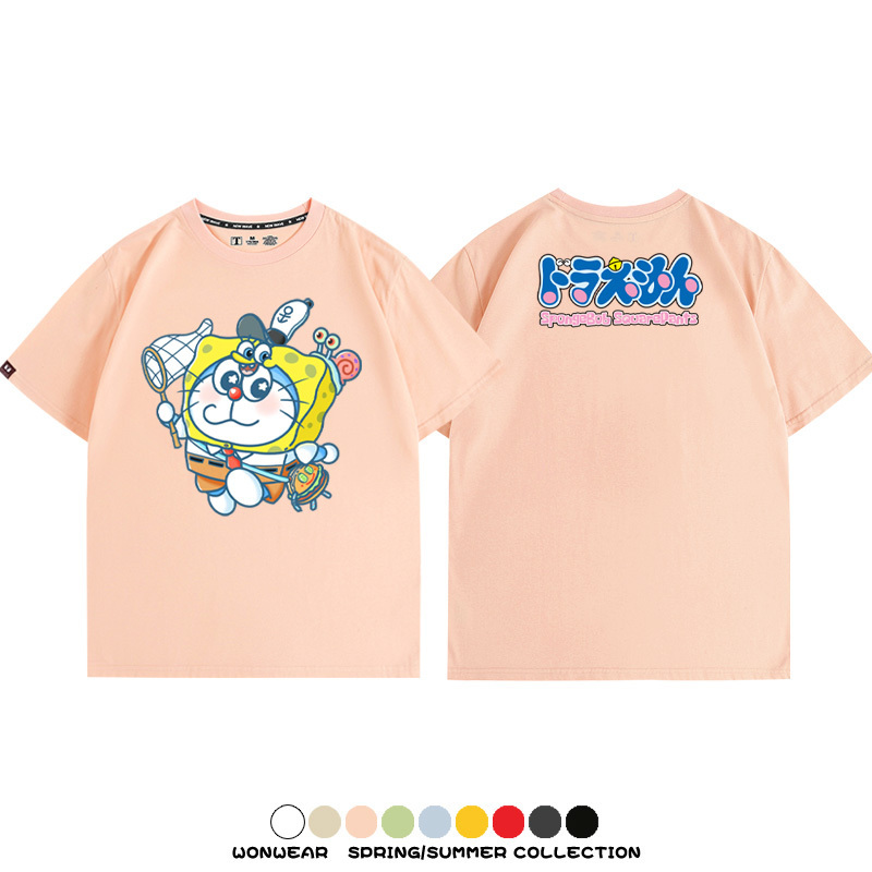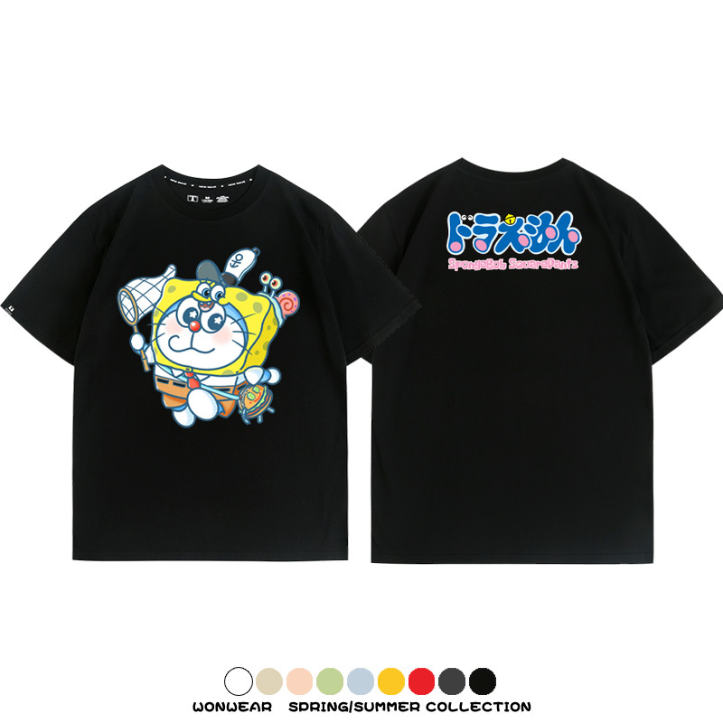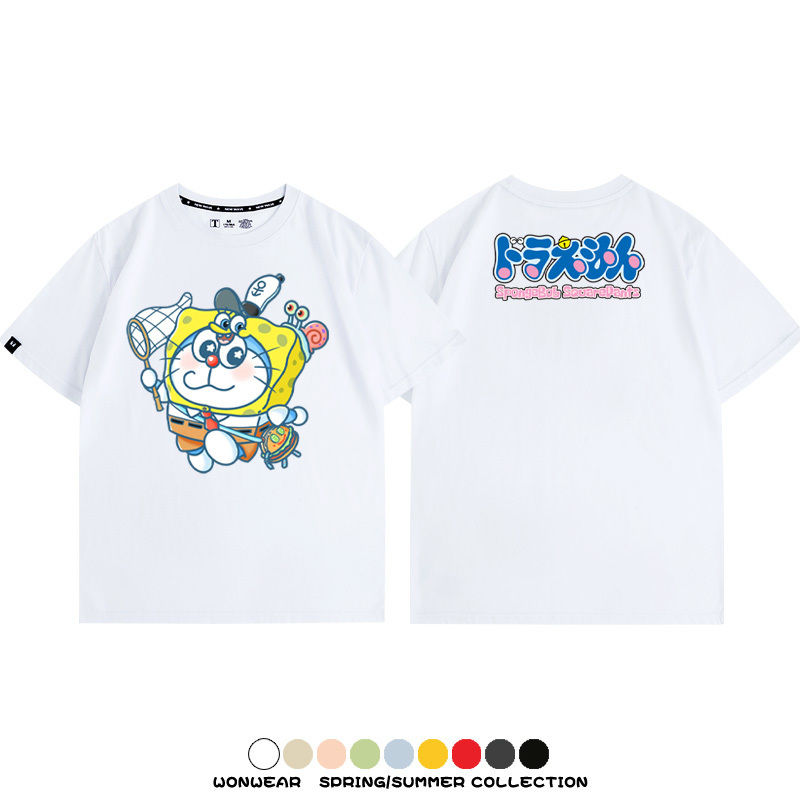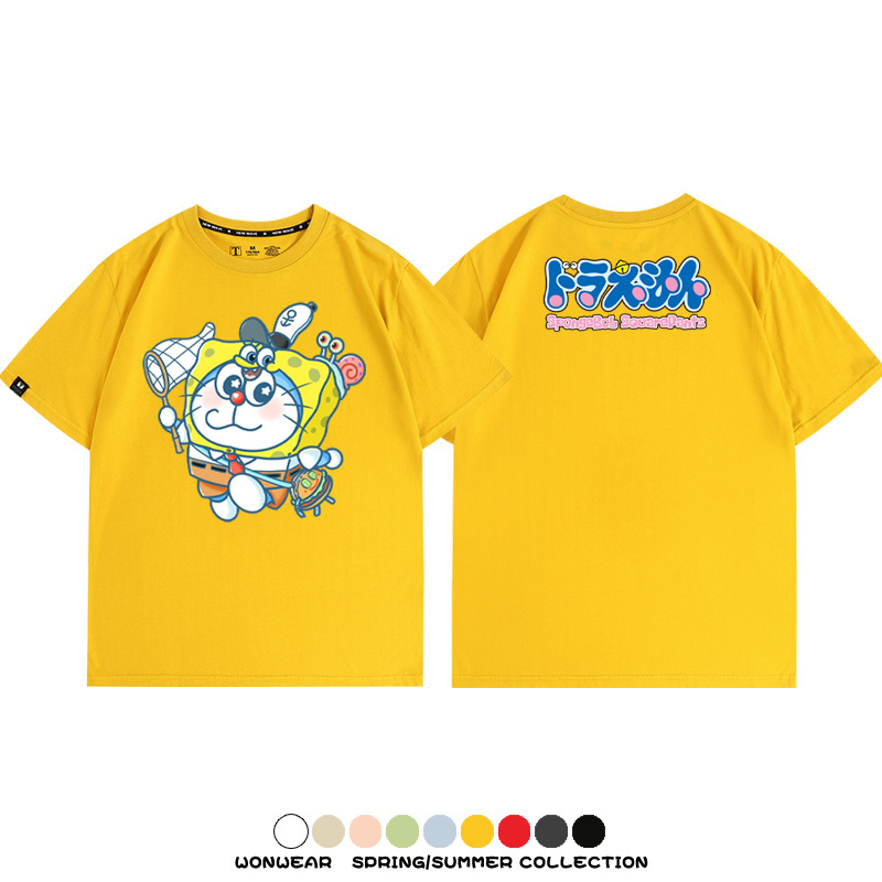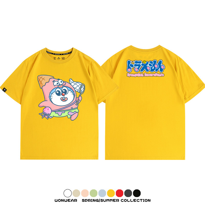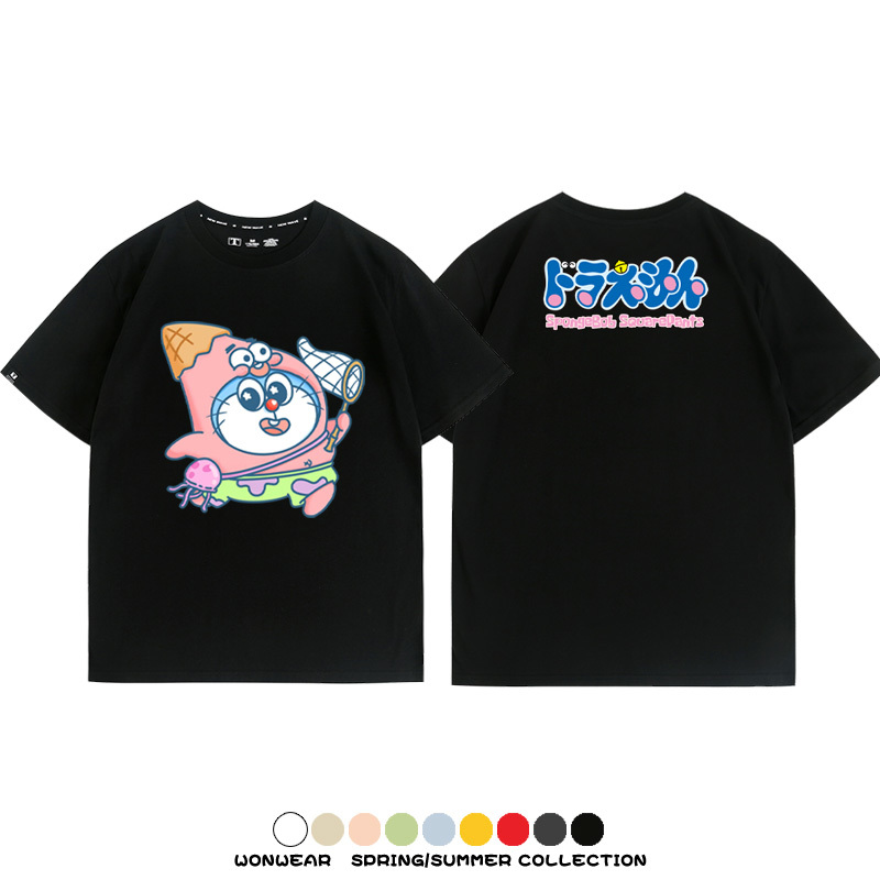 Spongebob Doraemon joint couple T-shirt cartoon star anime pure cotton short-sleeved tops for men
