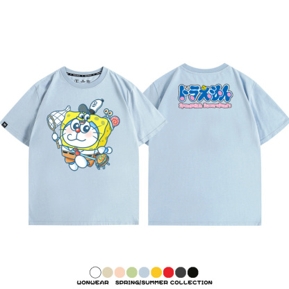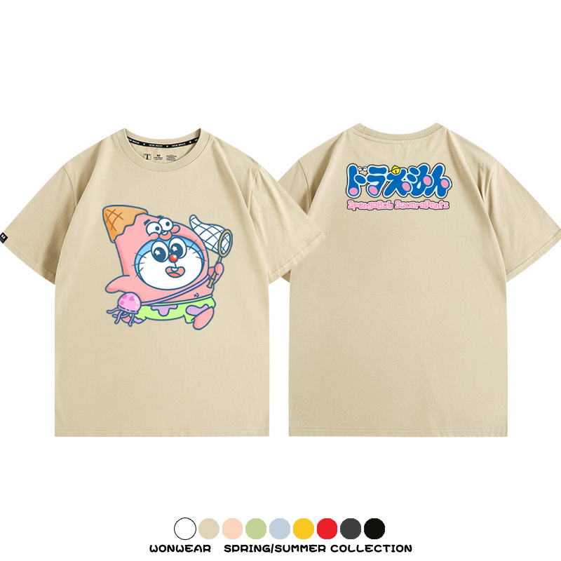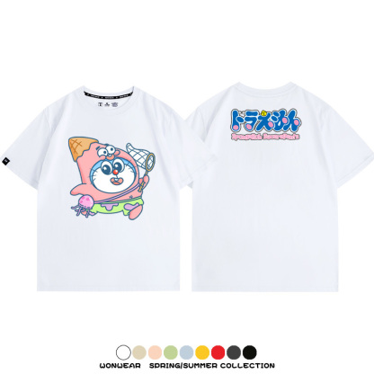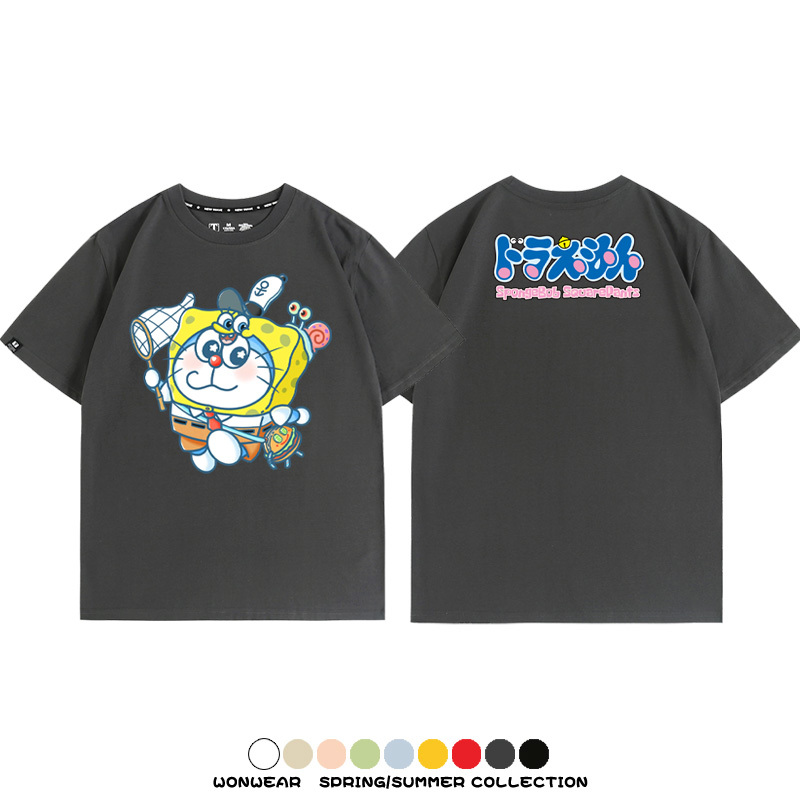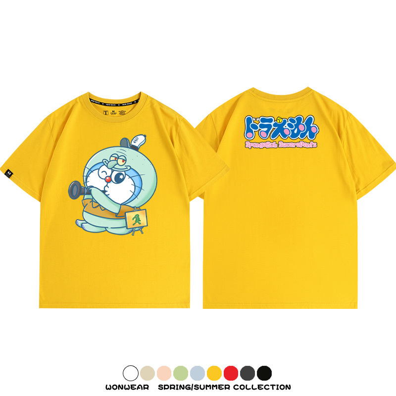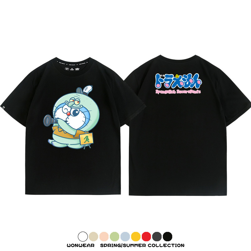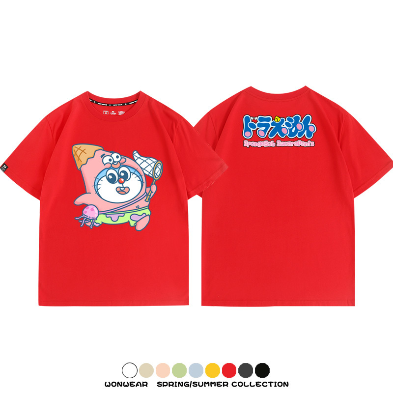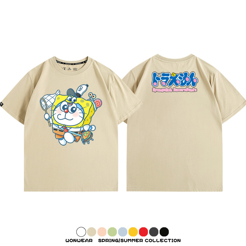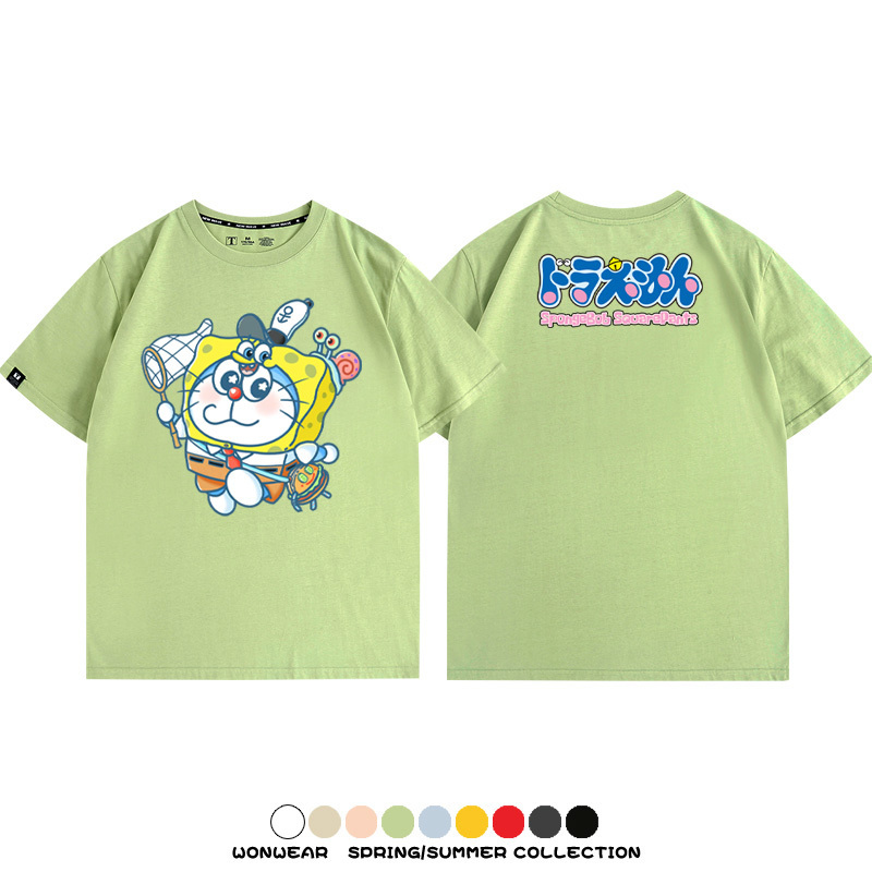 Spongebob Doraemon joint couple T-shirt cartoon star anime pure cotton short-sleeved tops for men
