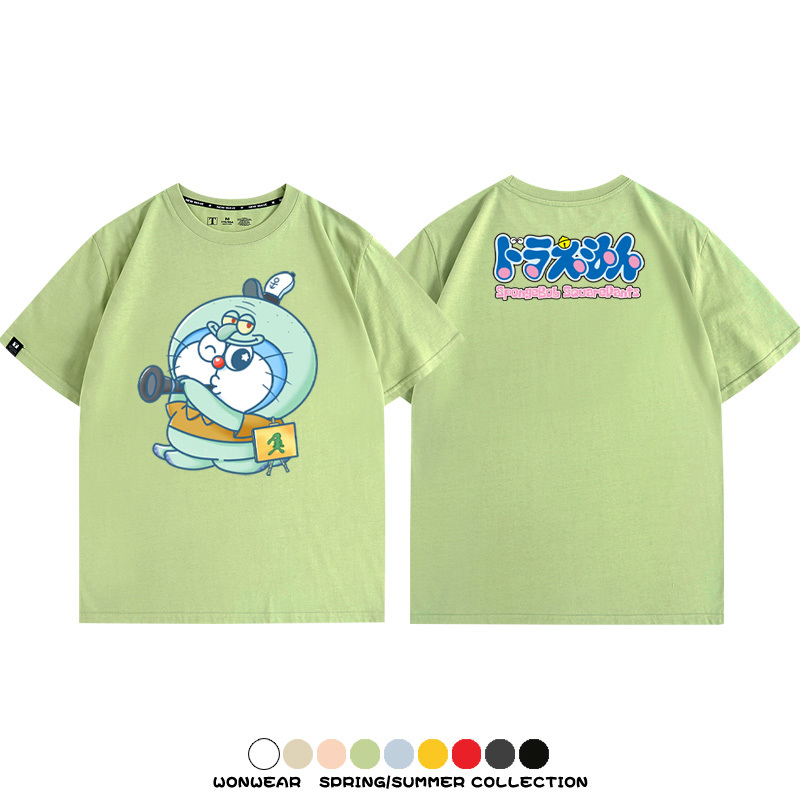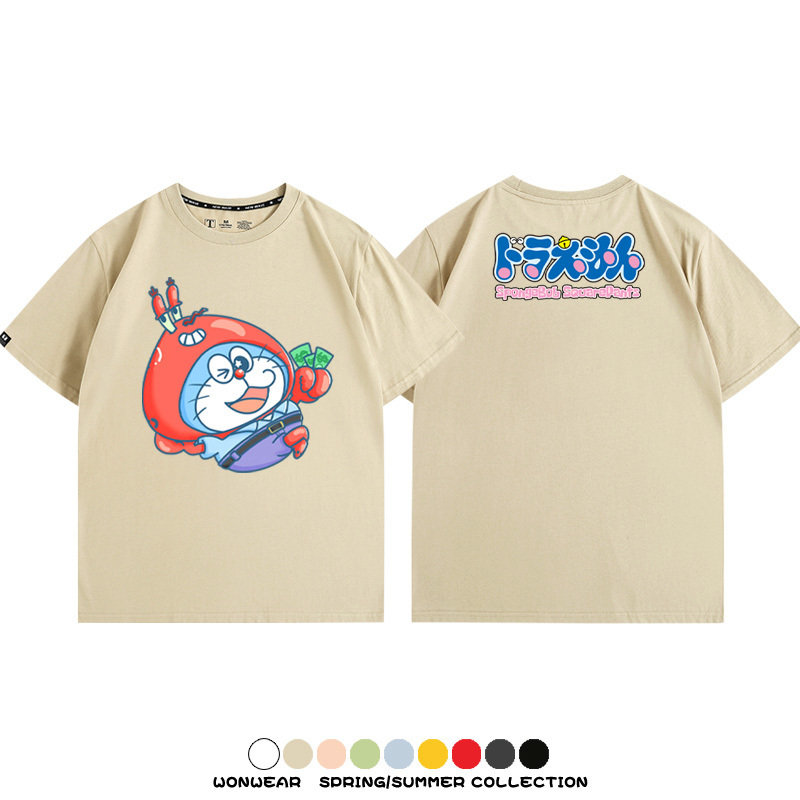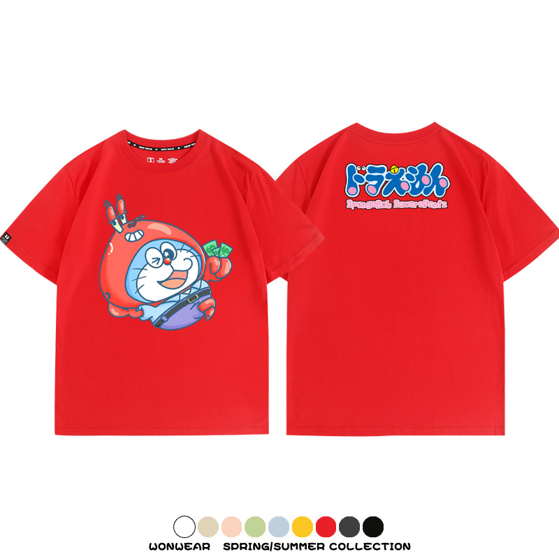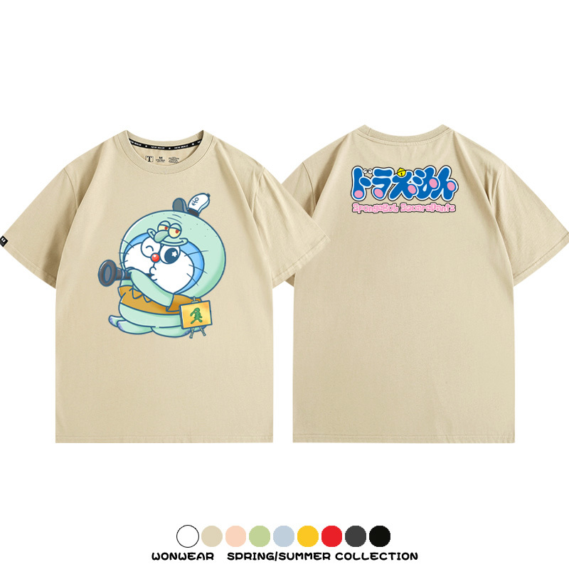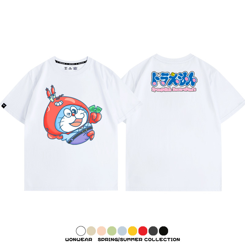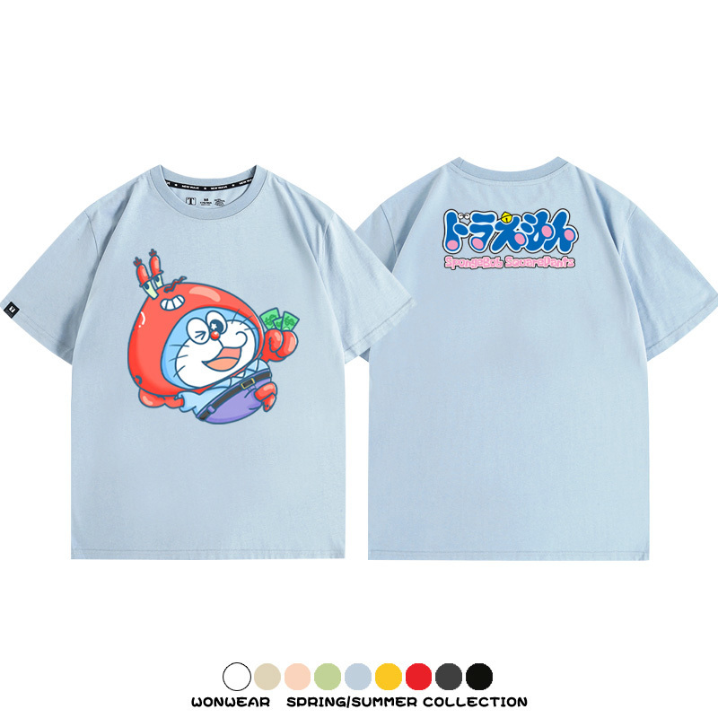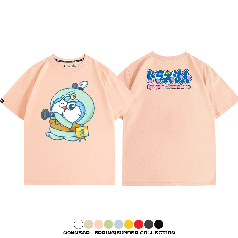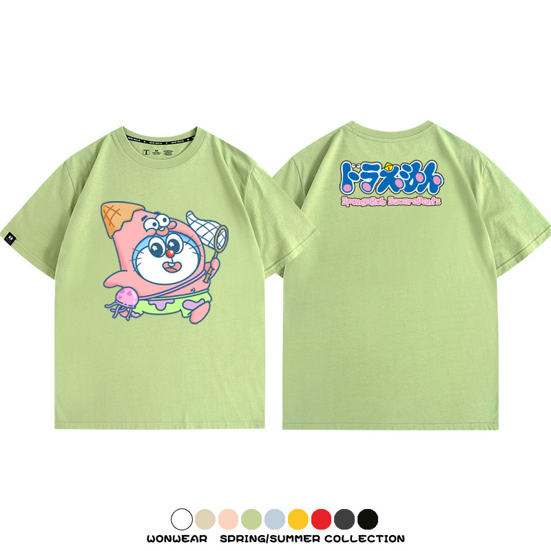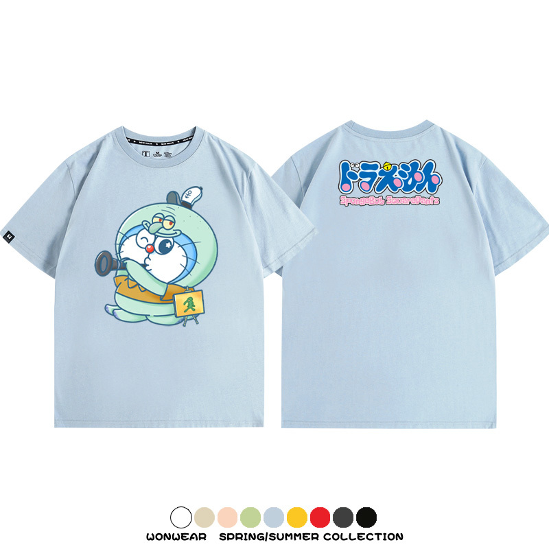 Spongebob Doraemon joint couple T-shirt cartoon star anime pure cotton short-sleeved tops for men