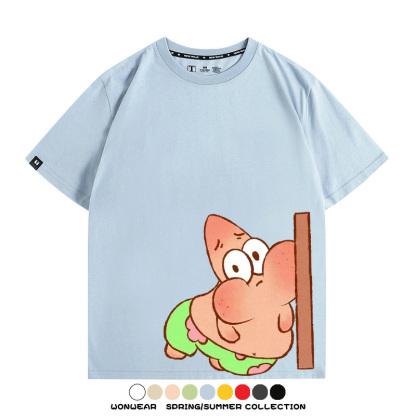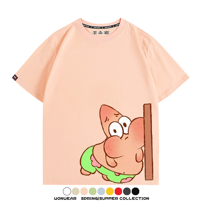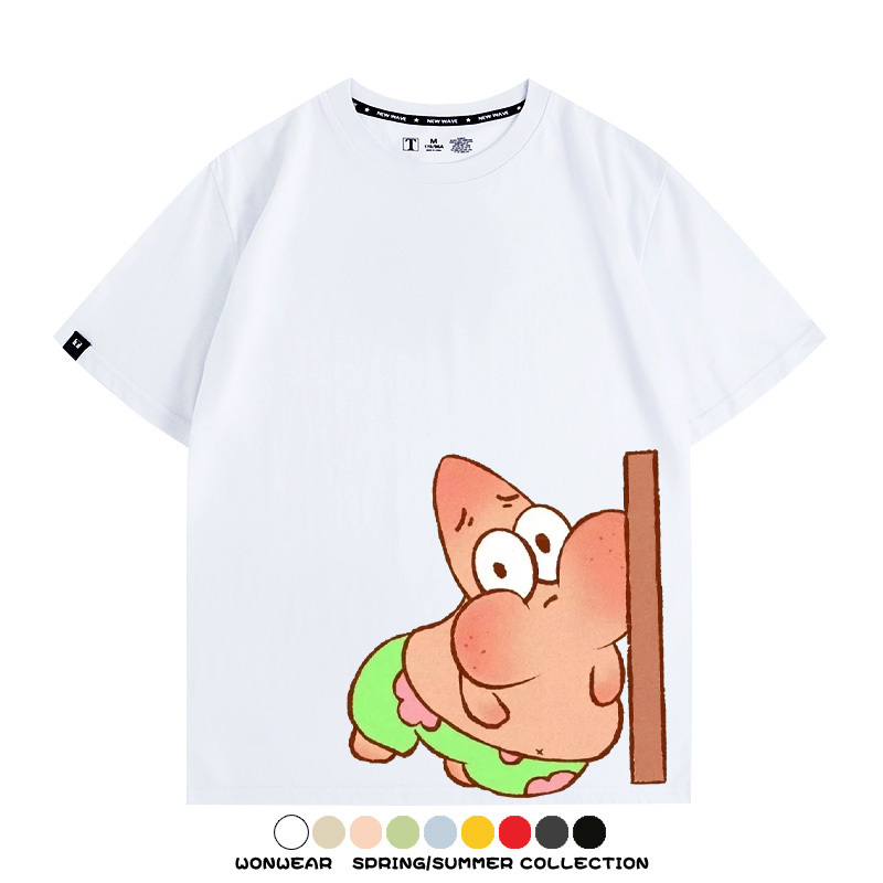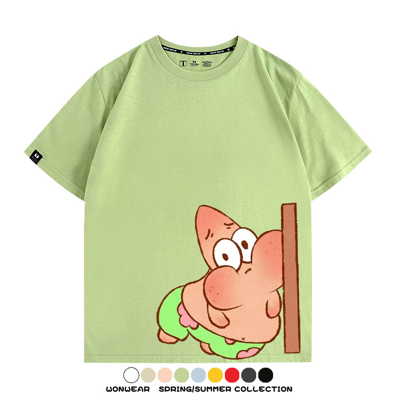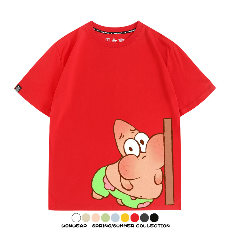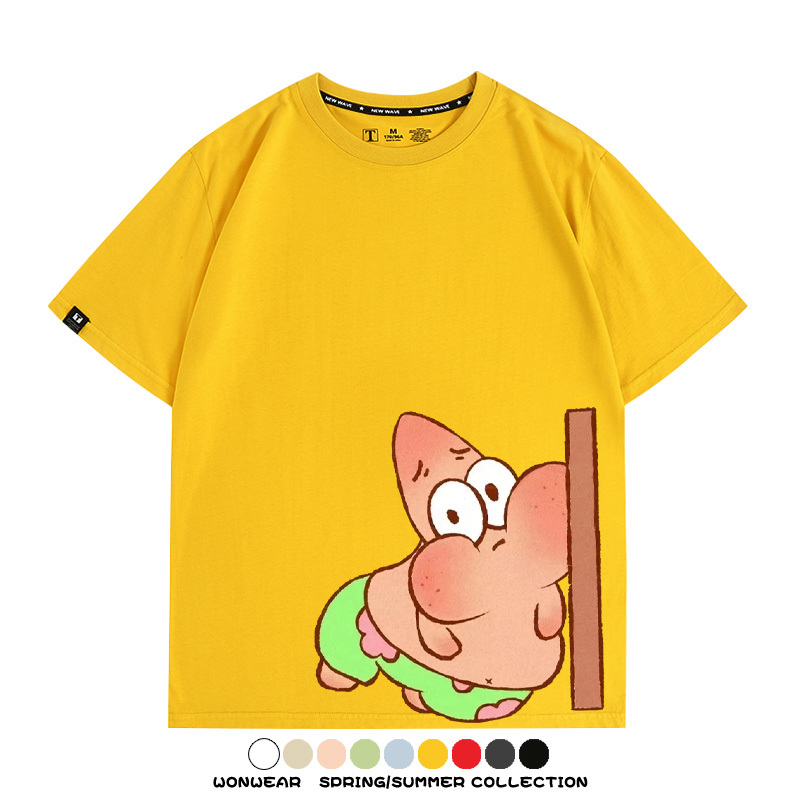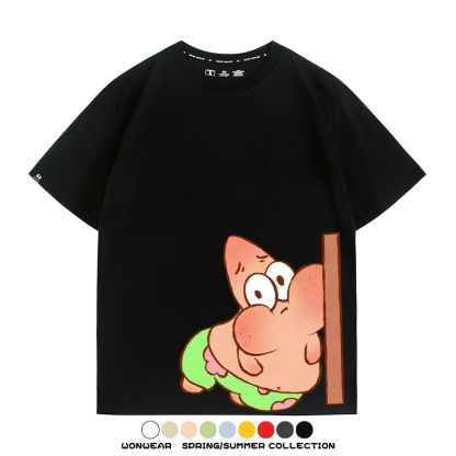 Spongebob Squarepants Big Star Cartoon Couple Outfit Round Neck Top Clothes Cartoon Animation Peripheral Co-branded Cotton T-shirt