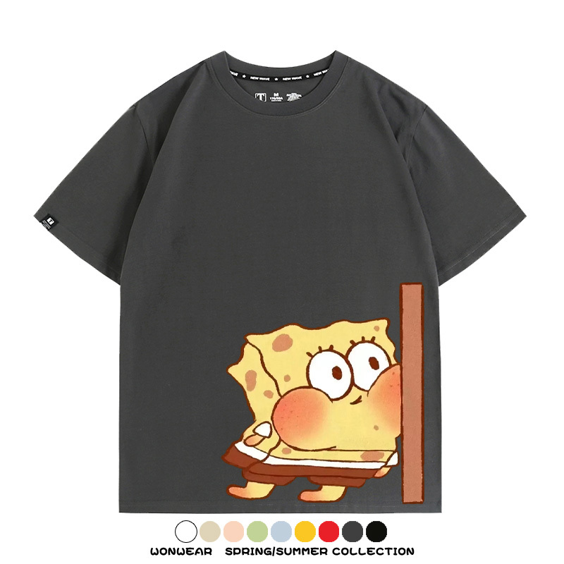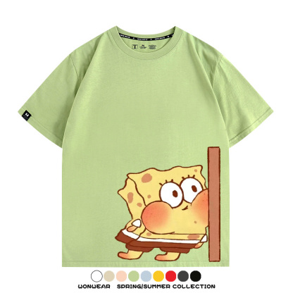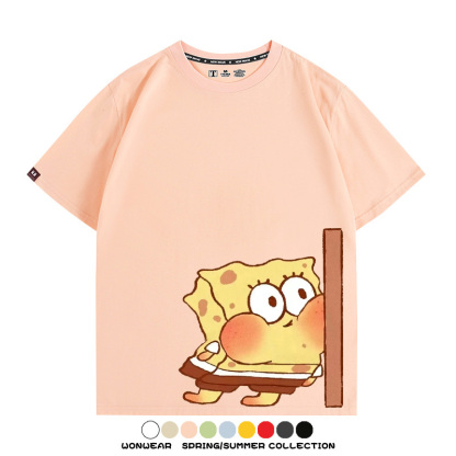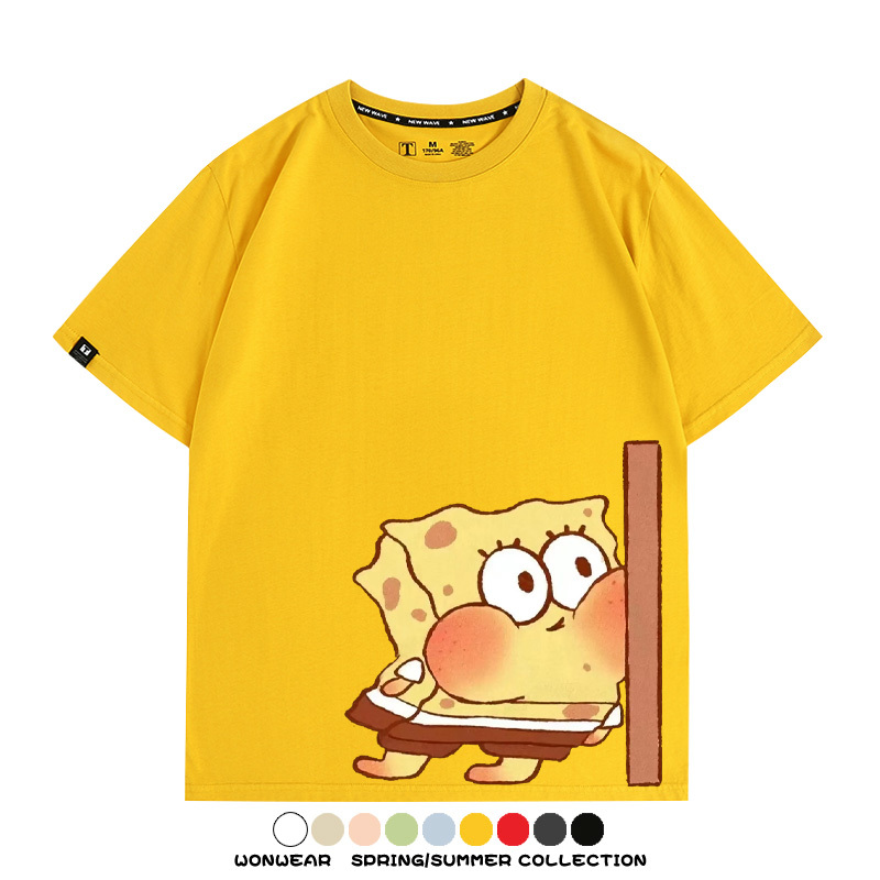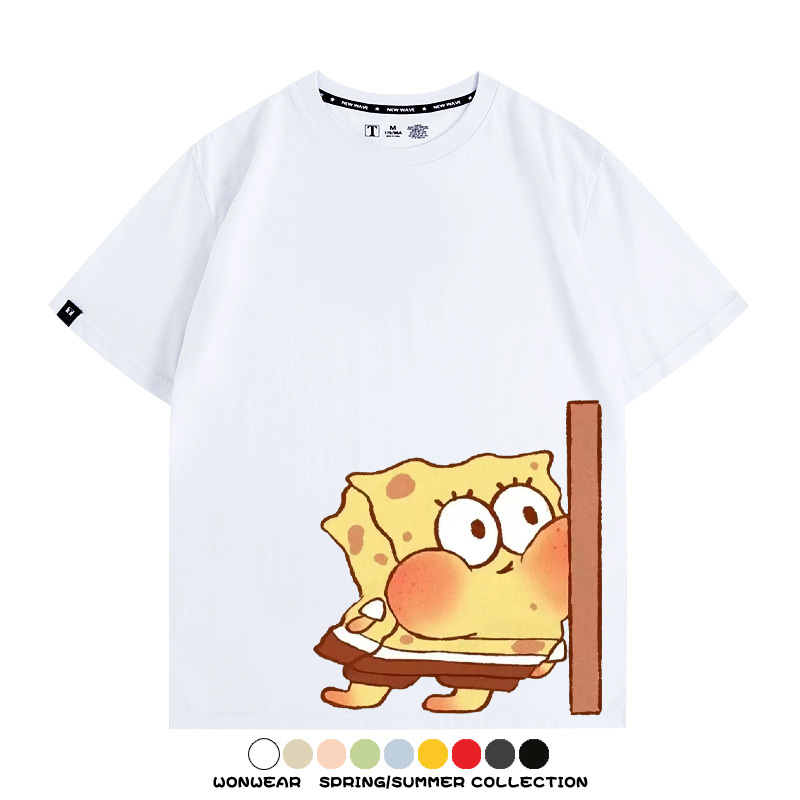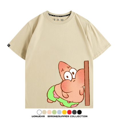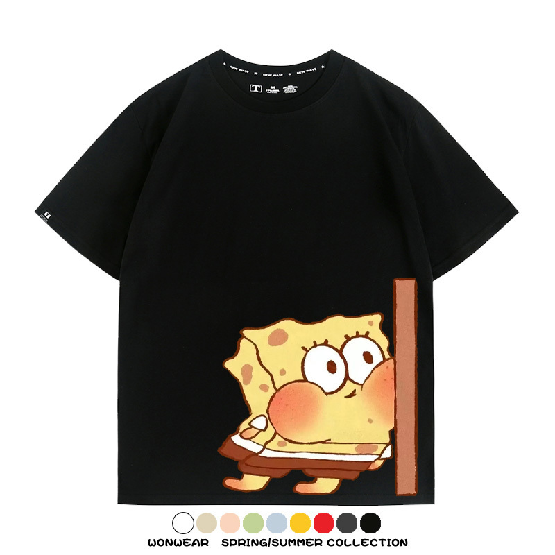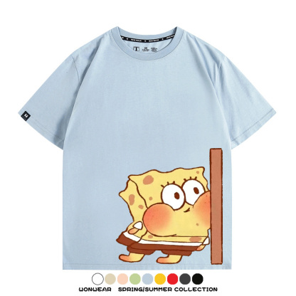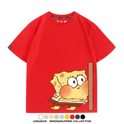 Spongebob Squarepants Big Star Cartoon Couple Outfit Round Neck Top Clothes Cartoon Animation Peripheral Co-branded Cotton T-shirt