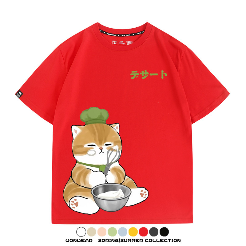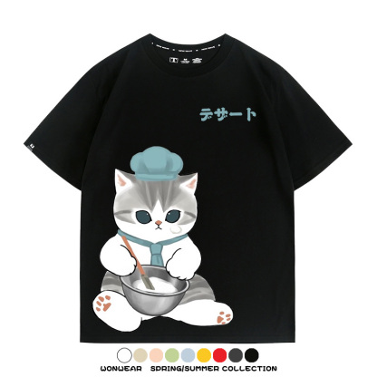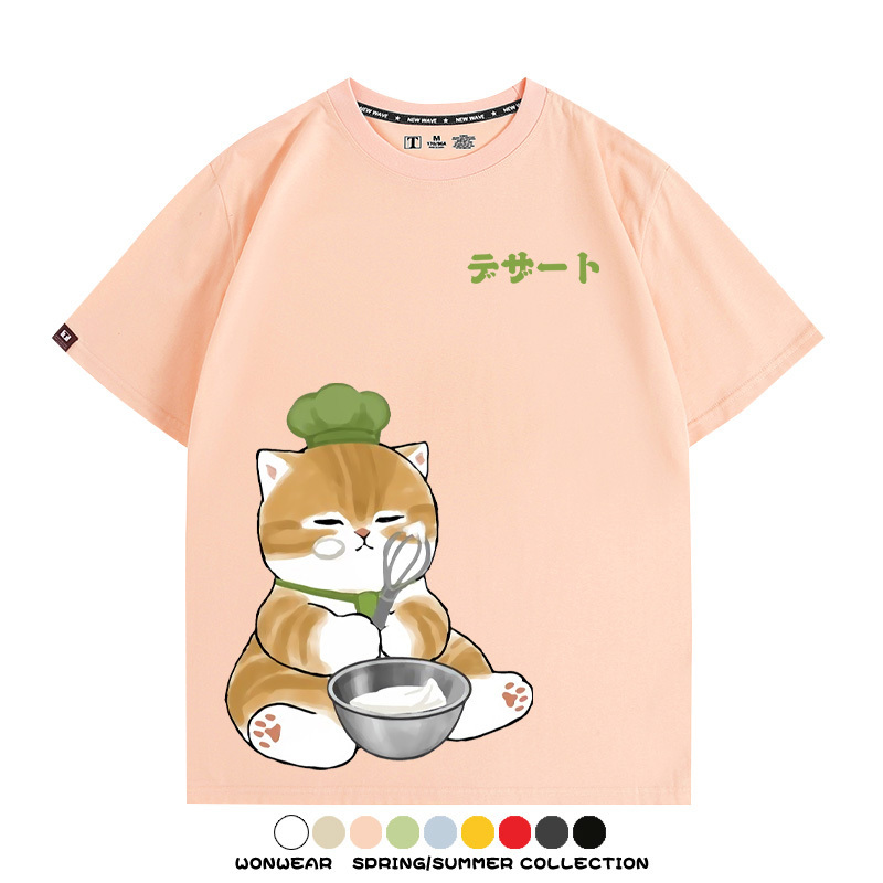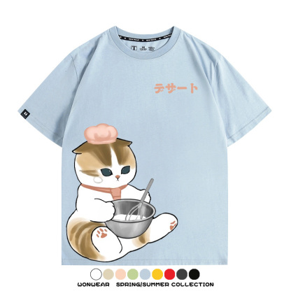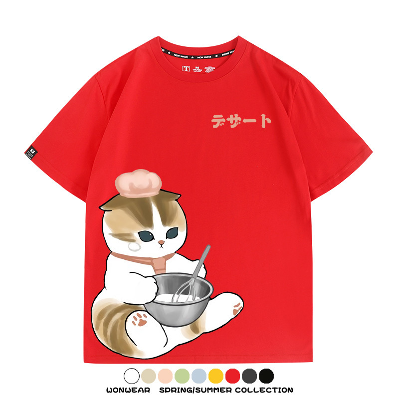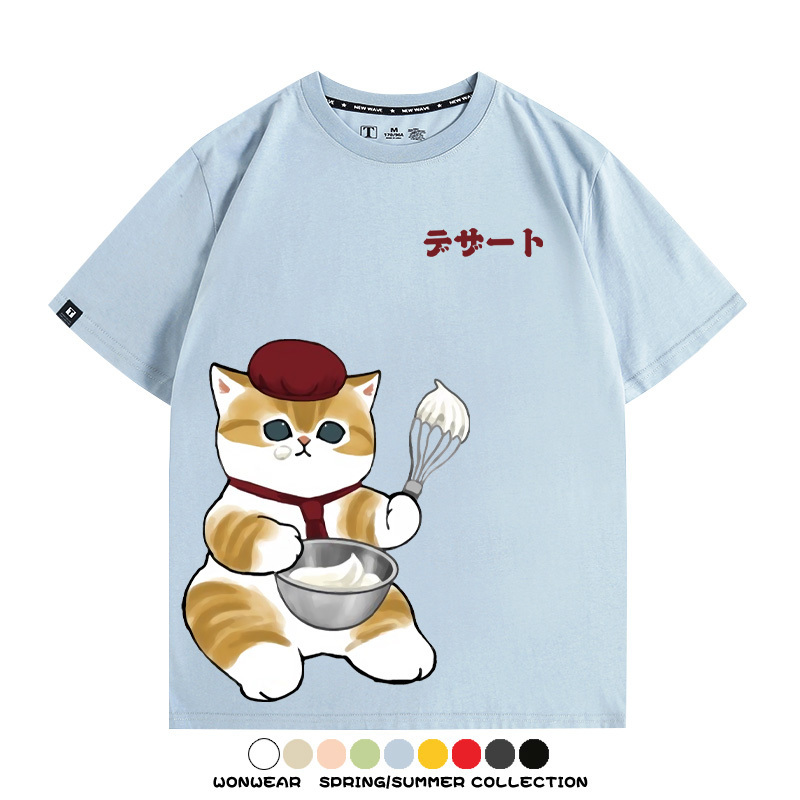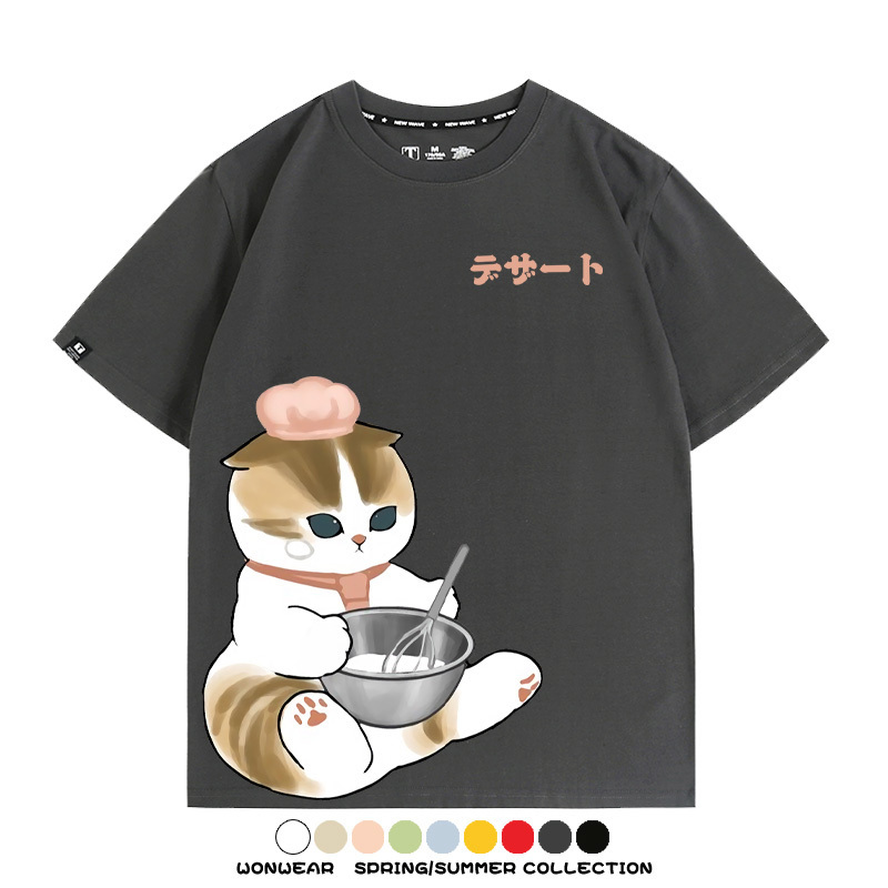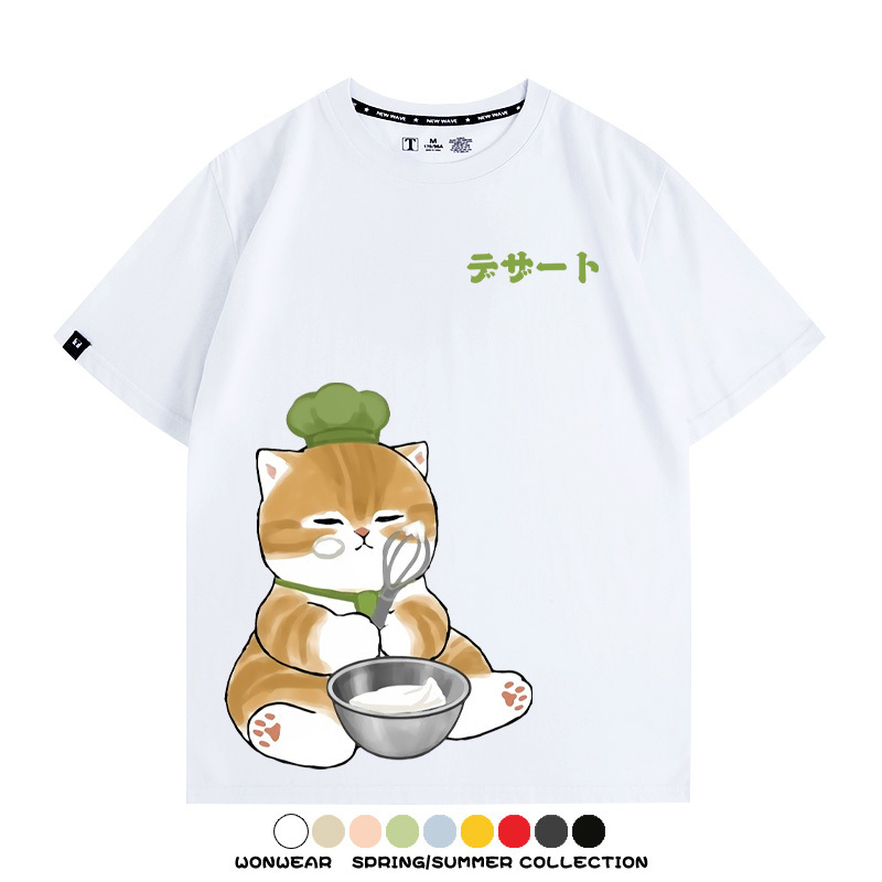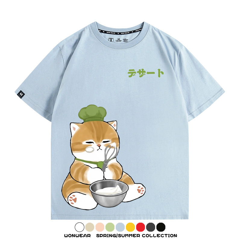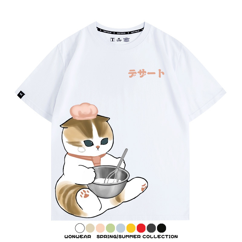Pastry chef Japanese Cat Fu Sandy Cartoon Short Sleeve Couple Outfit Anime Cartoon Peripheral Co-branded T-shirt Summer Men's Half Sleeve
