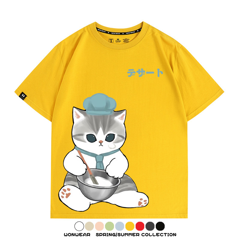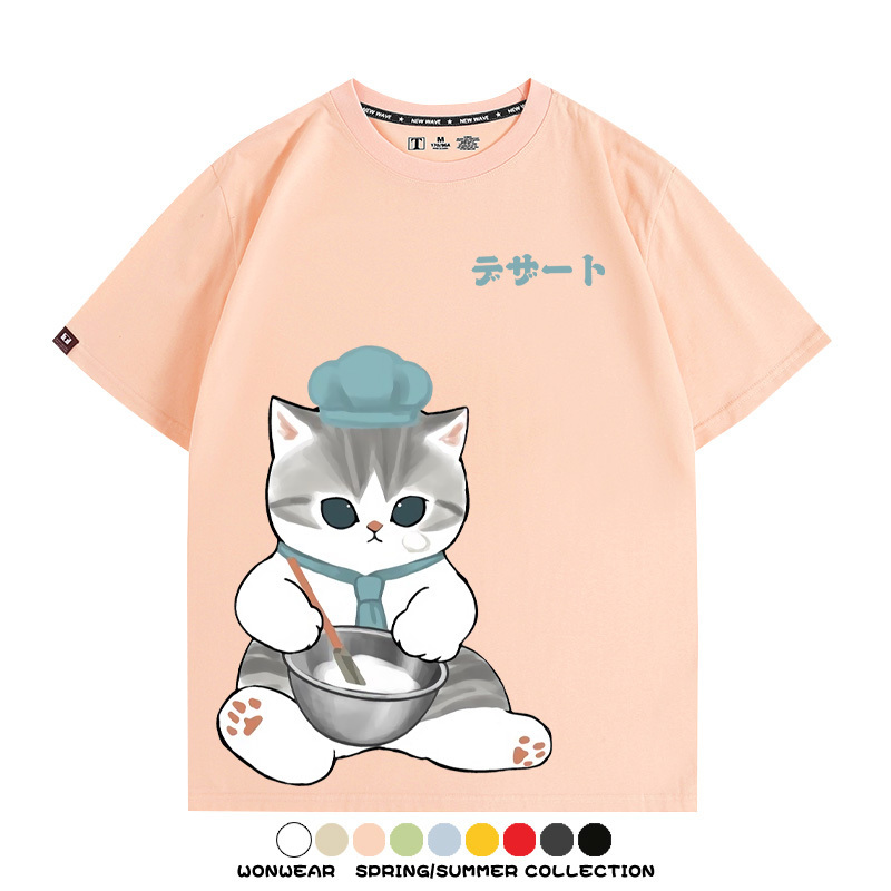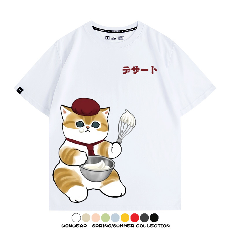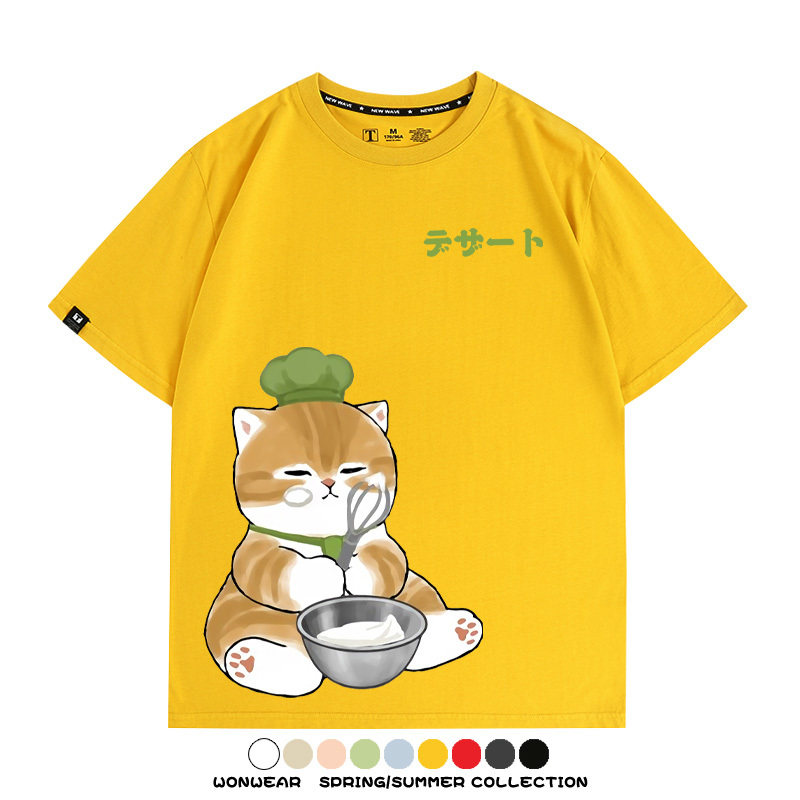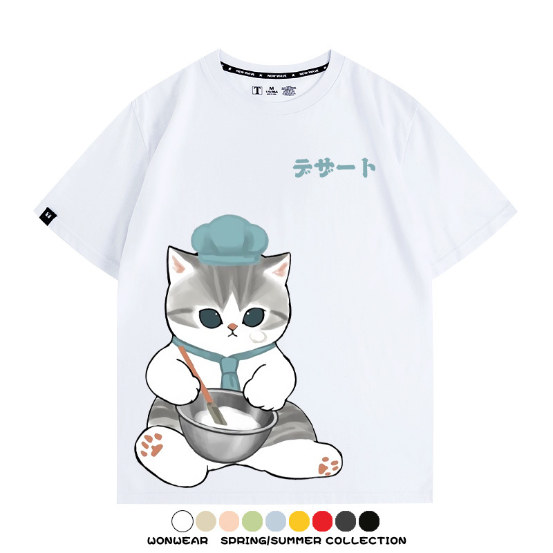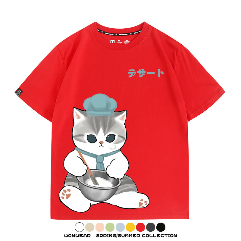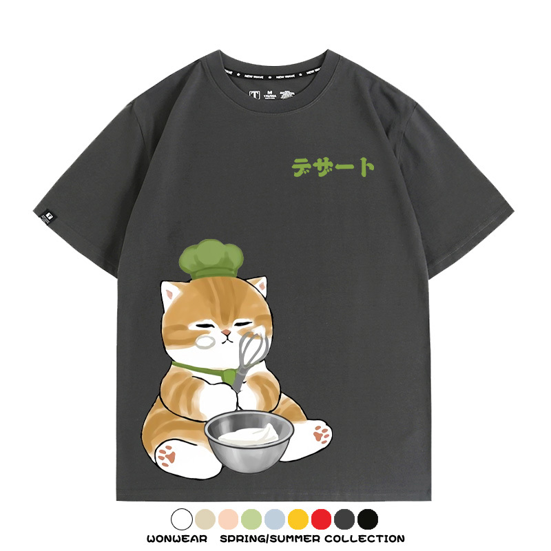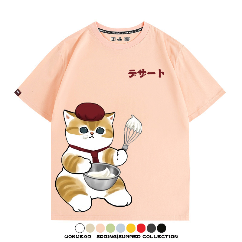 Pastry chef Japanese Cat Fu Sandy Cartoon Short Sleeve Couple Outfit Anime Cartoon Peripheral Co-branded T-shirt Summer Men's Half Sleeve