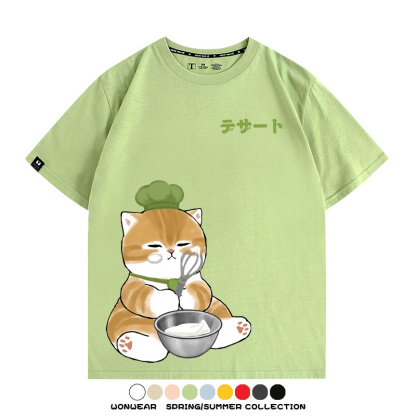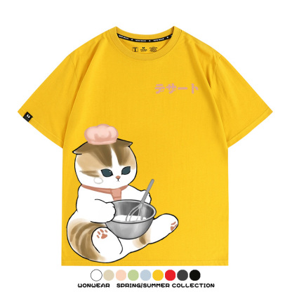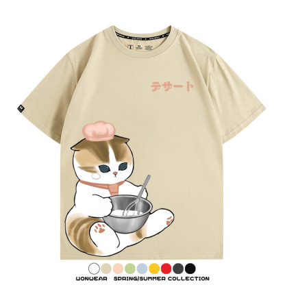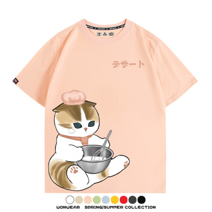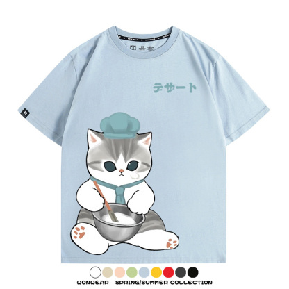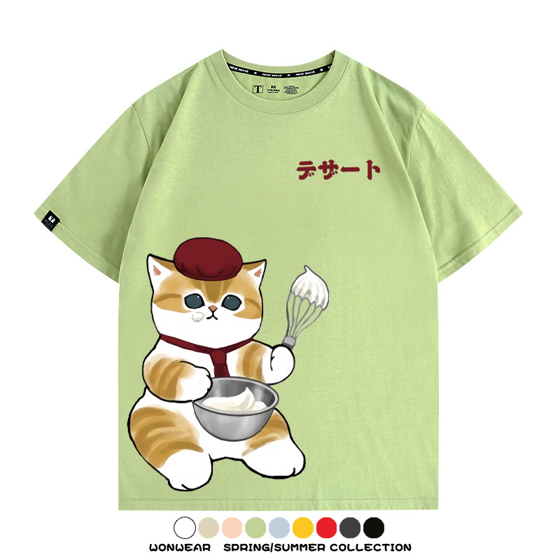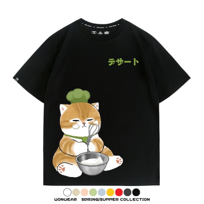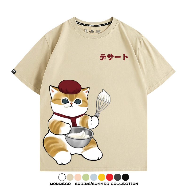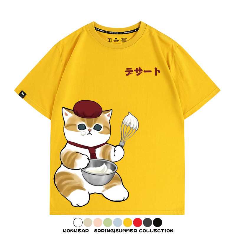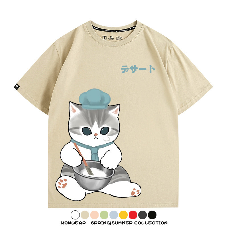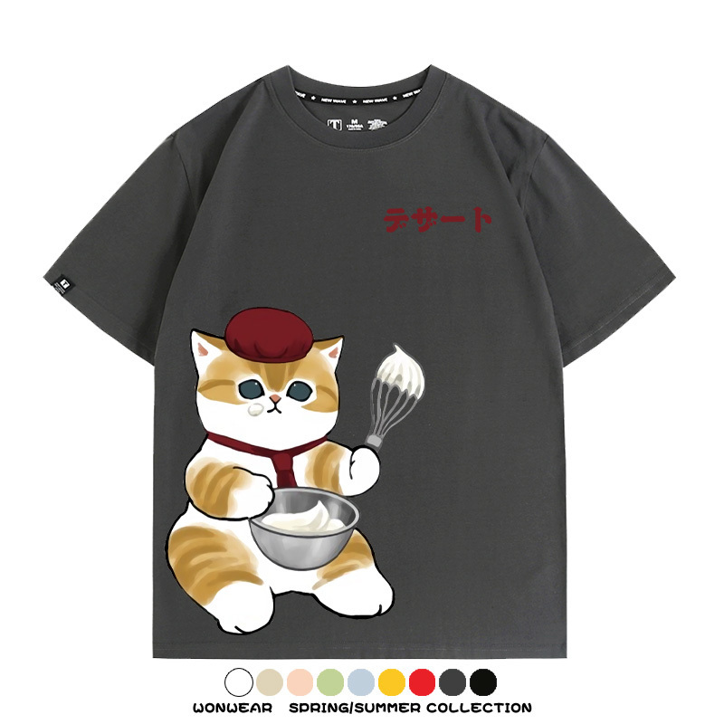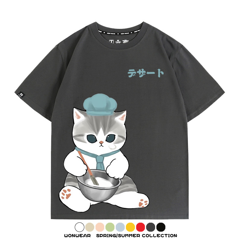 Pastry chef Japanese Cat Fu Sandy Cartoon Short Sleeve Couple Outfit Anime Cartoon Peripheral Co-branded T-shirt Summer Men's Half Sleeve
