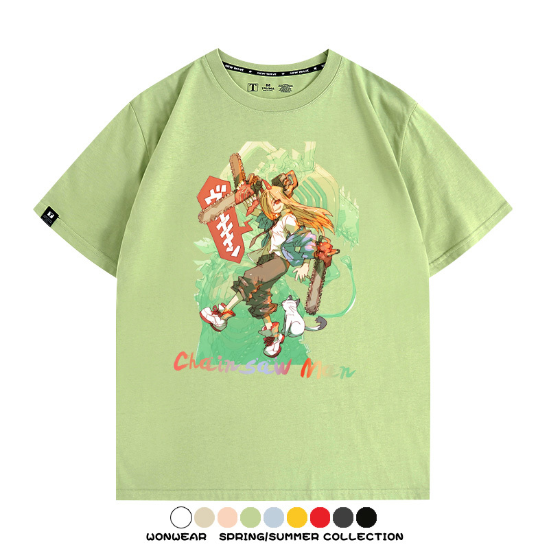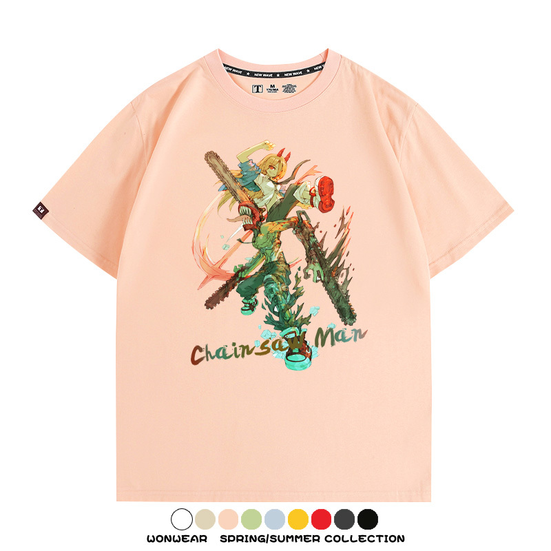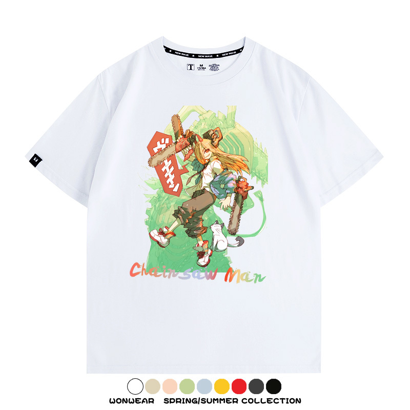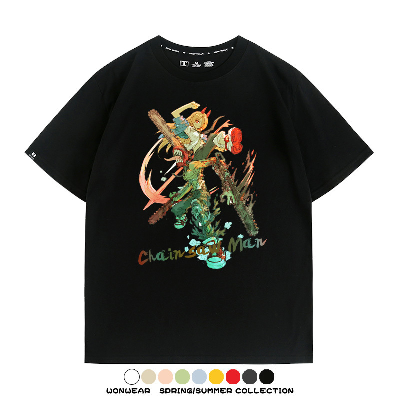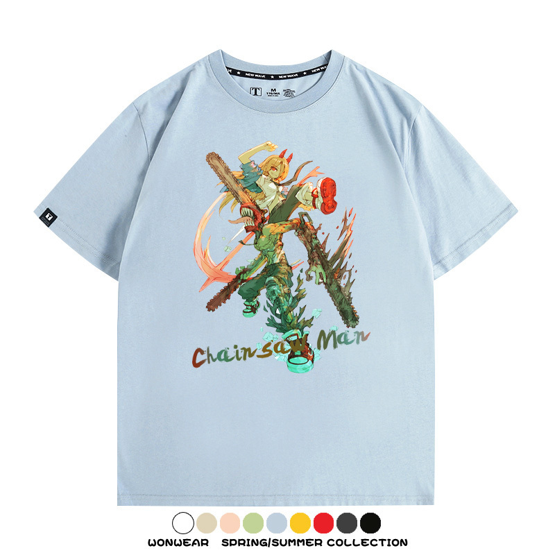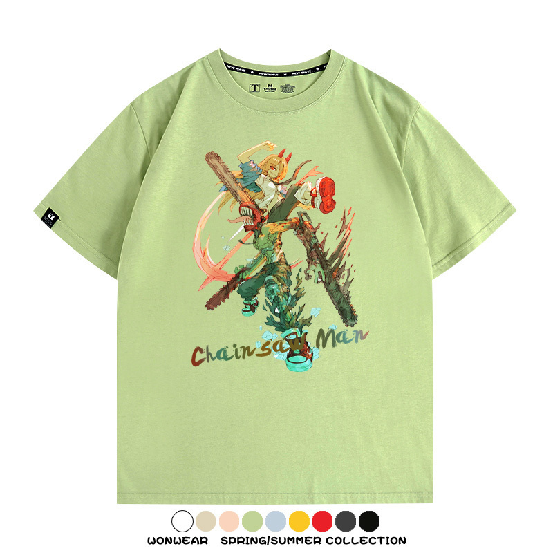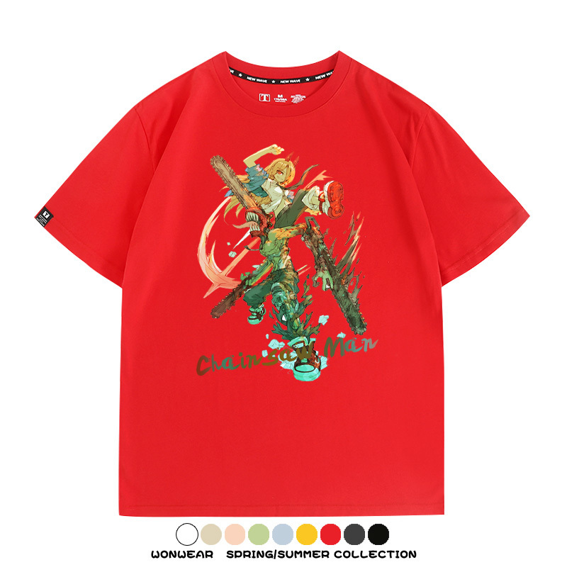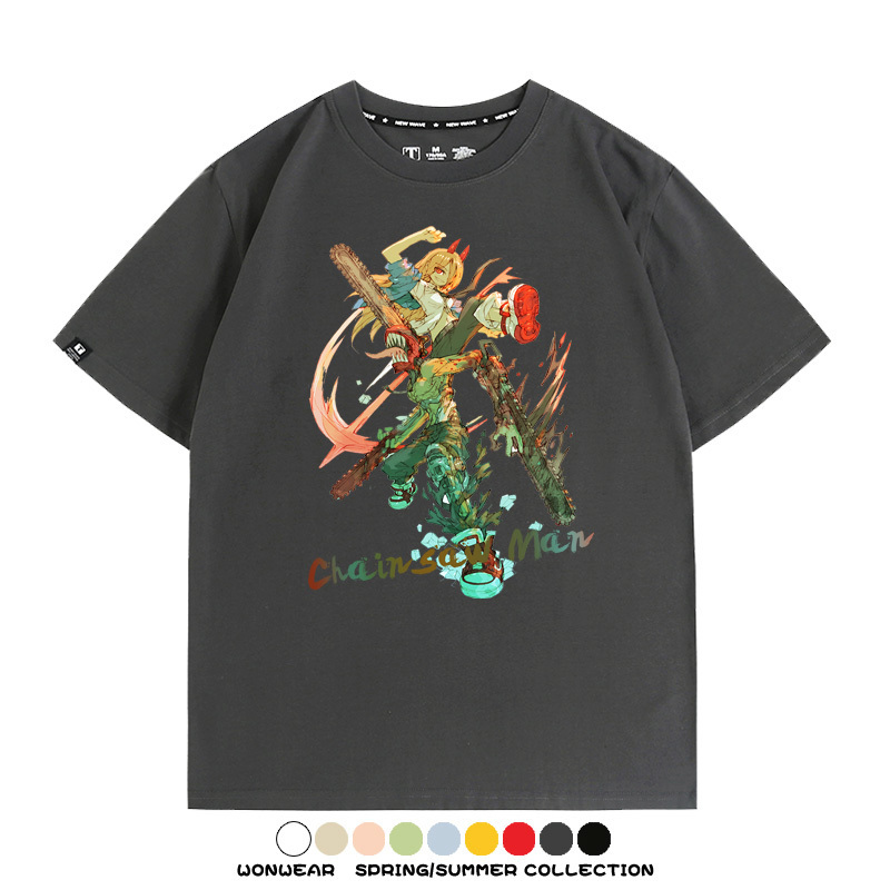 鏈鋸人帕瓦電次賽博機甲周邊聯動短袖上衣夏季男潮純棉T恤衫寬鬆