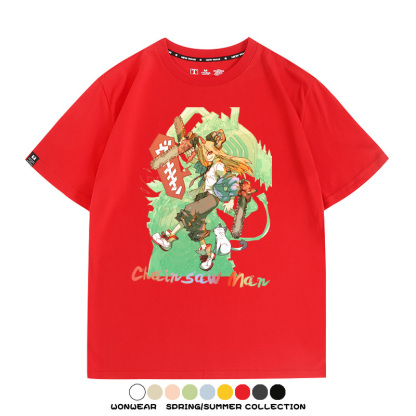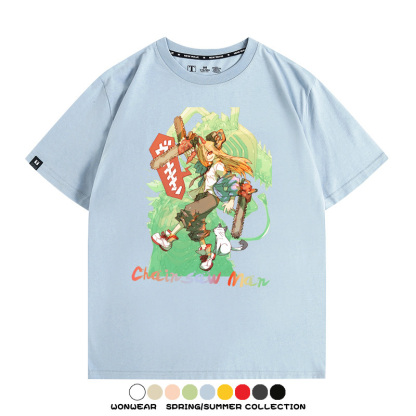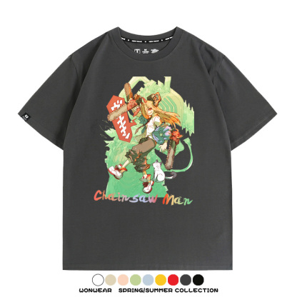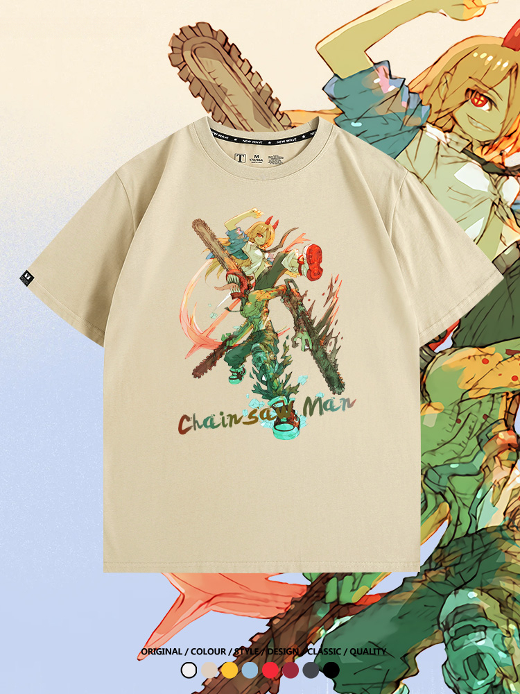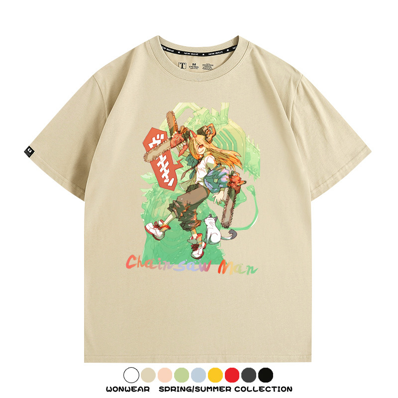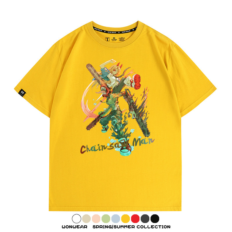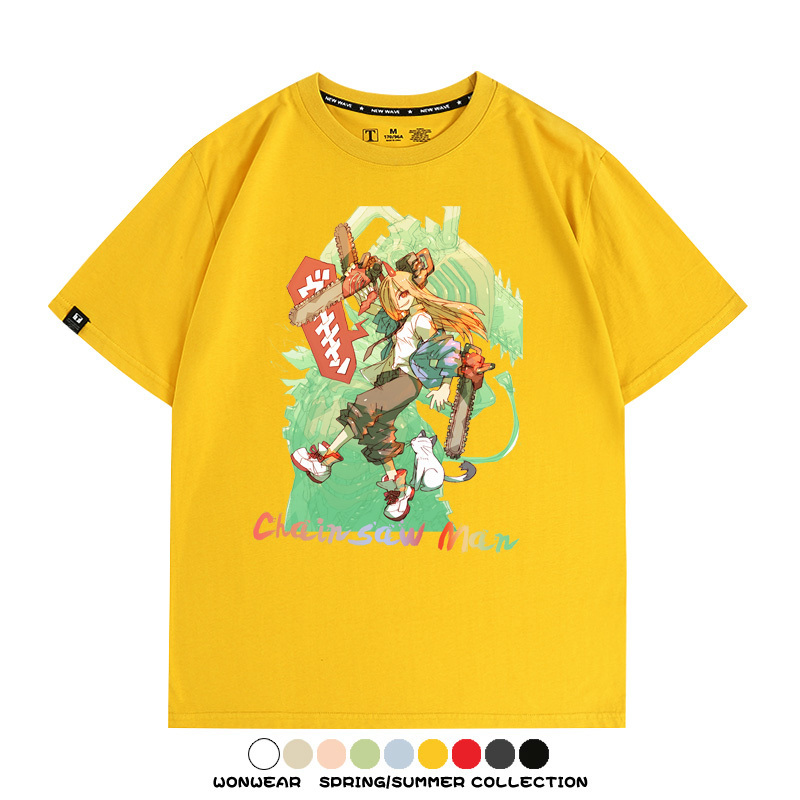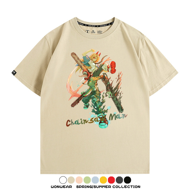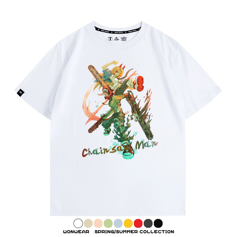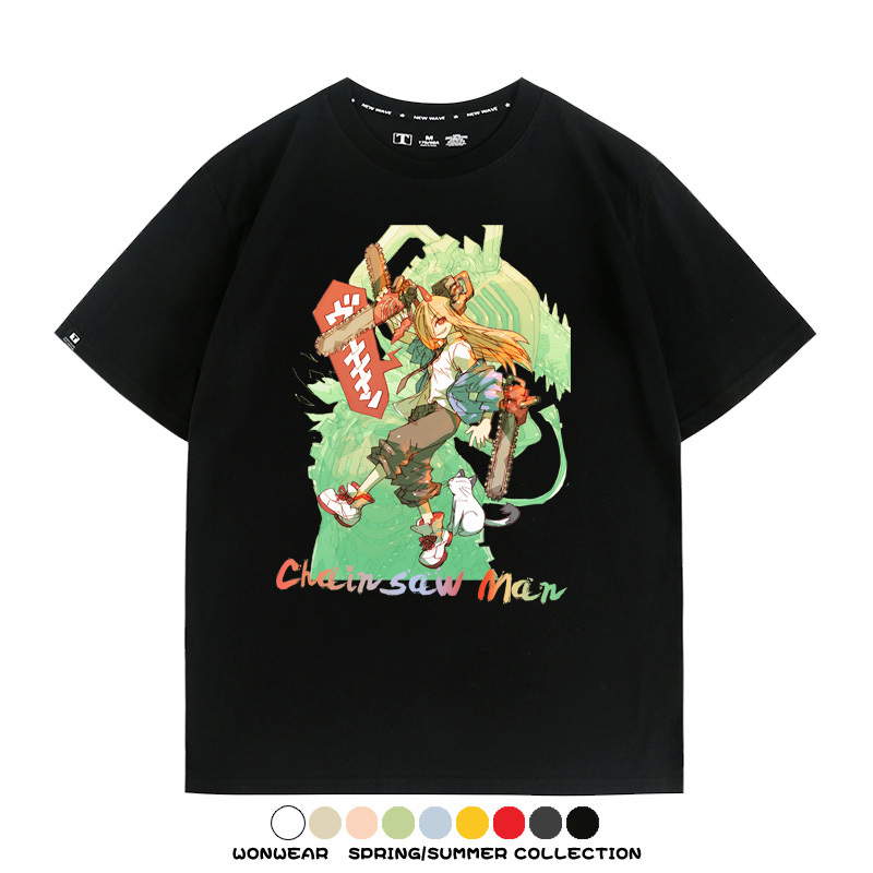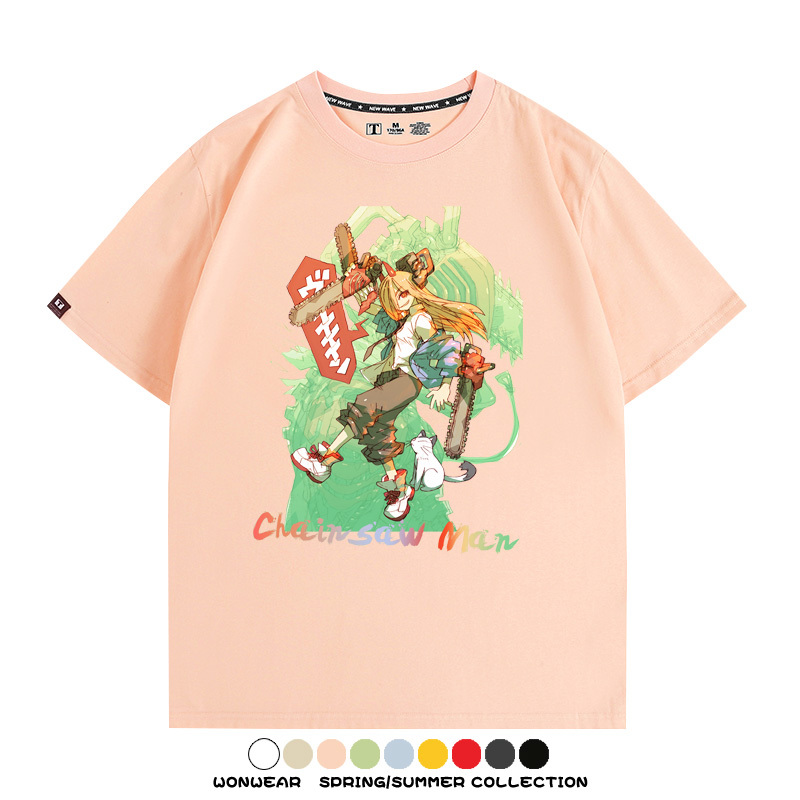 鏈鋸人帕瓦電次賽博機甲周邊聯動短袖上衣夏季男潮純棉T恤衫寬鬆