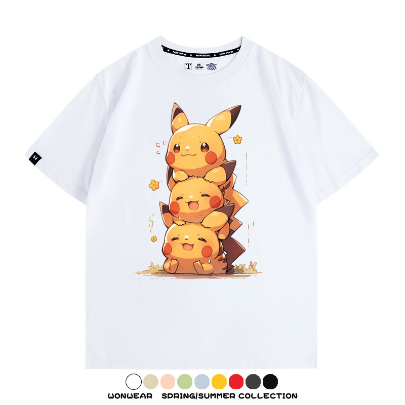 寶可夢皮卡丘可愛疊疊樂 親子情侶裝寬鬆短袖T