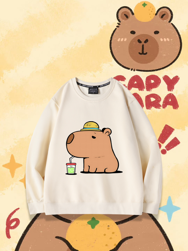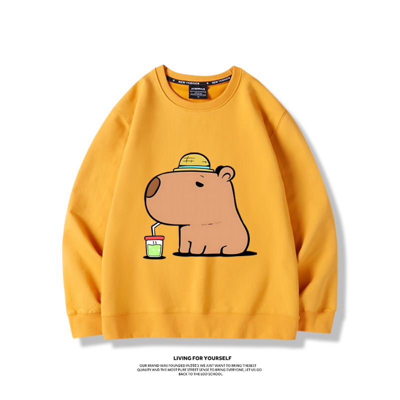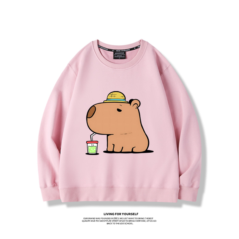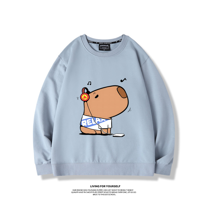 卡皮巴拉可愛水豚君2024親子情侶裝 圓領長袖