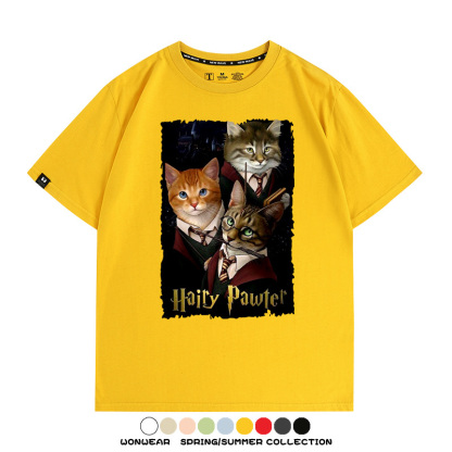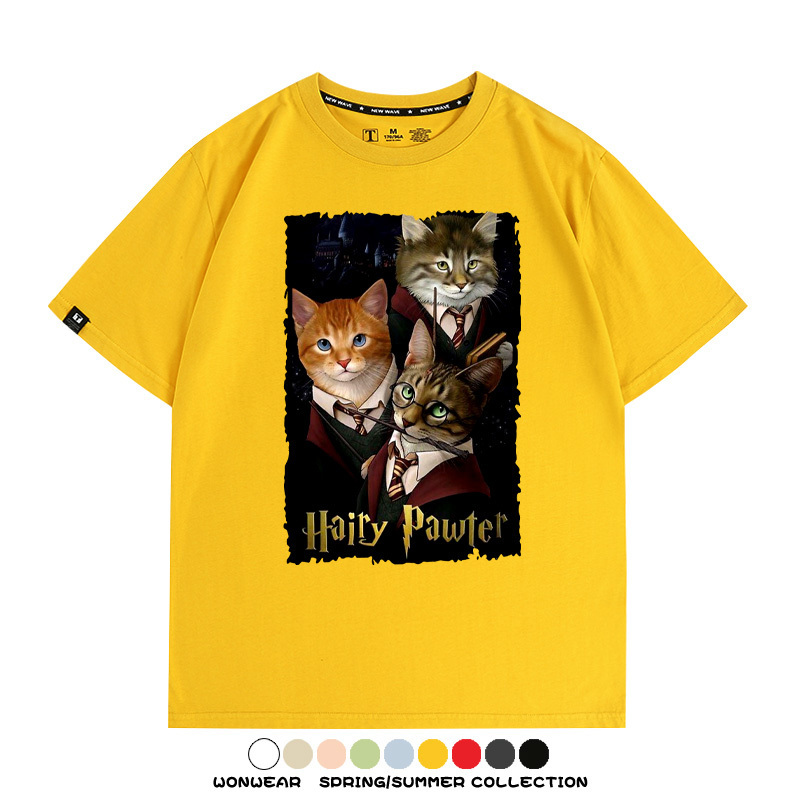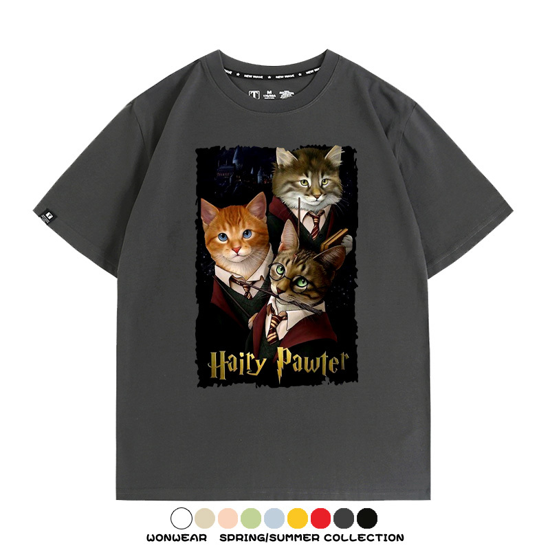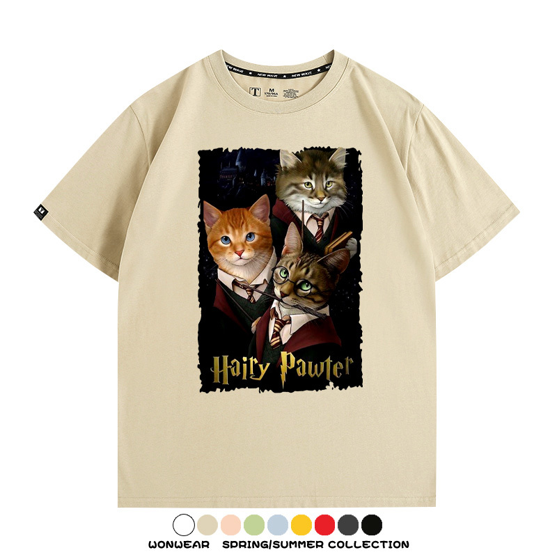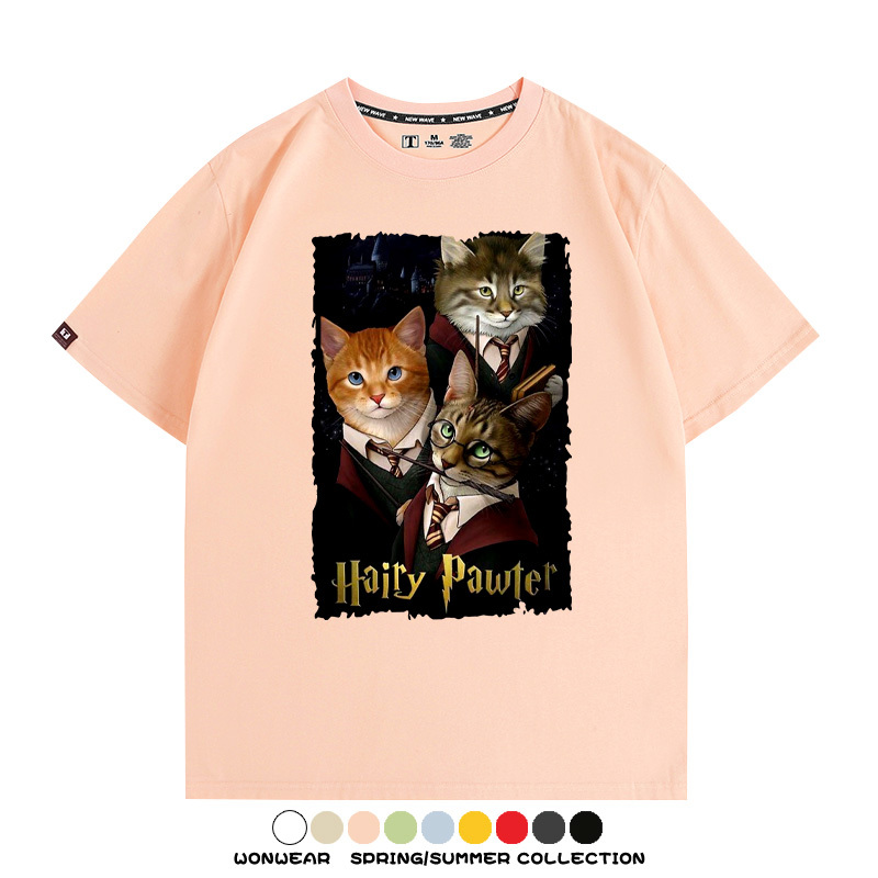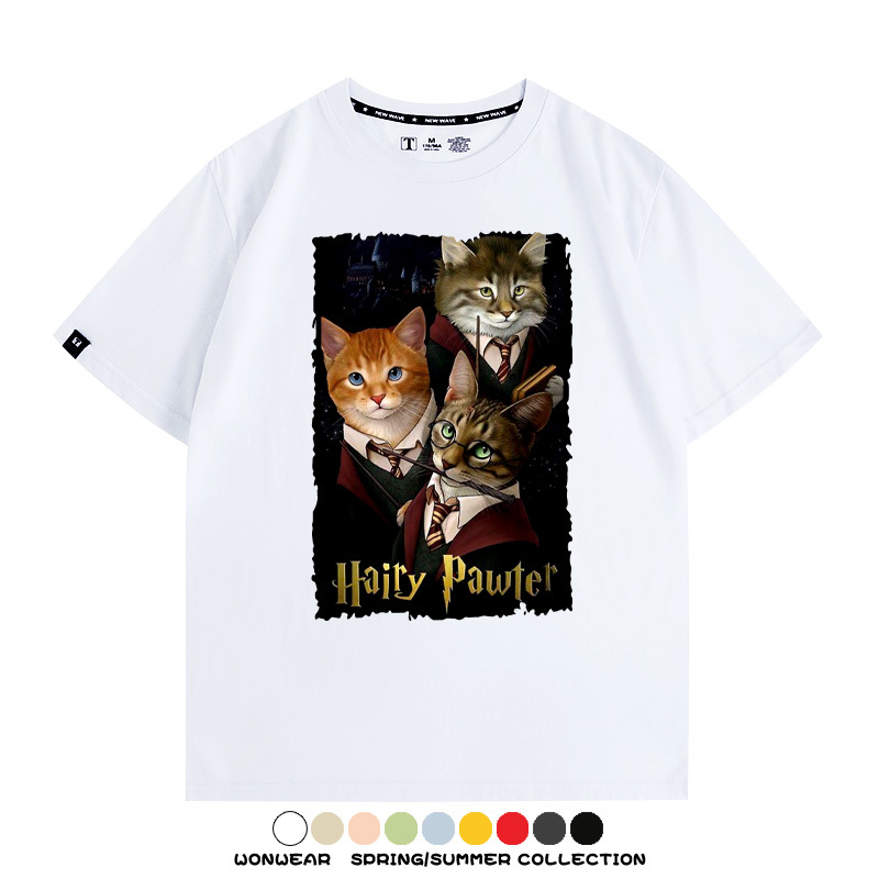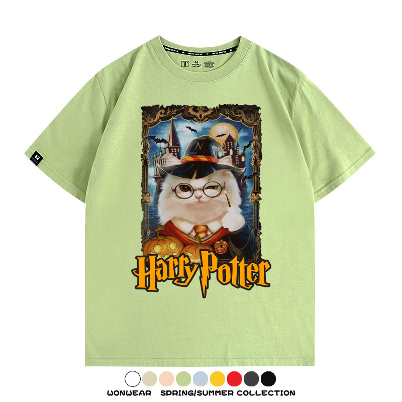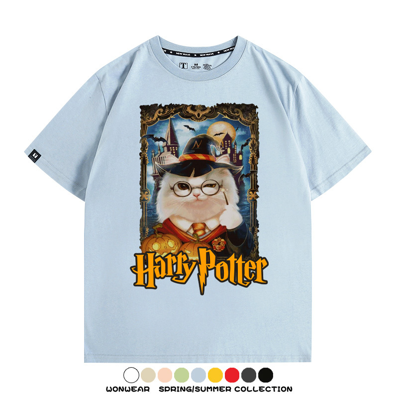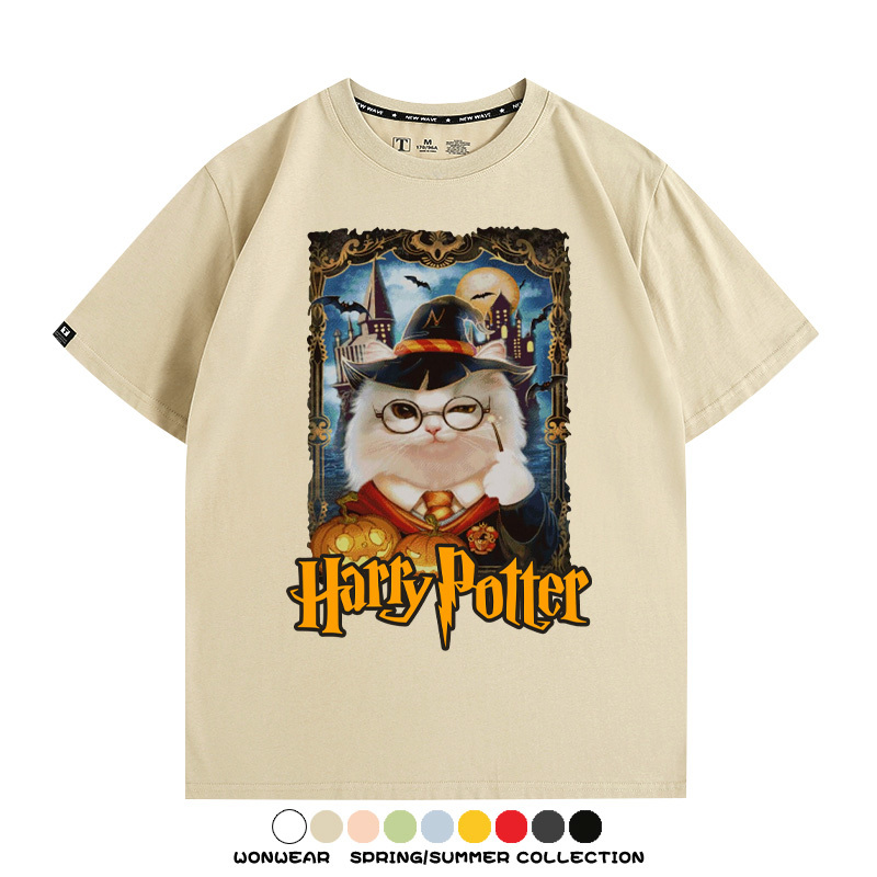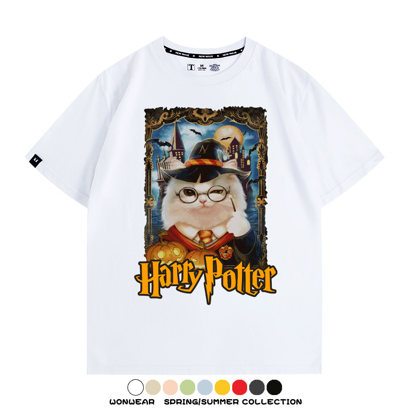 哈利波特貓貓美式復古情侶裝短袖上衣服卡通周邊純棉t恤衫半袖男