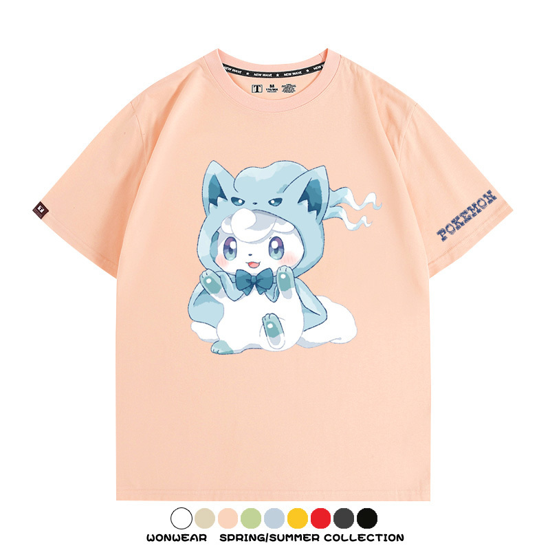 寶可夢阿羅拉六尾遊戲動漫COS卡通周邊情侶短袖衣服純棉T恤衫寬鬆
