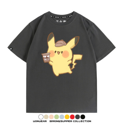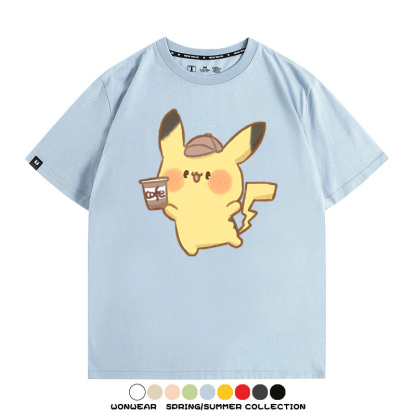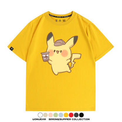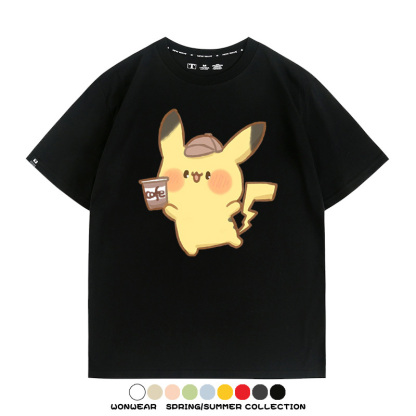 精靈寶可夢傻可愛卡通情侶裝短袖耿鬼皮卡丘動漫周邊t恤上衣服夏