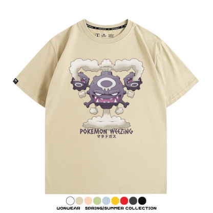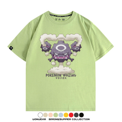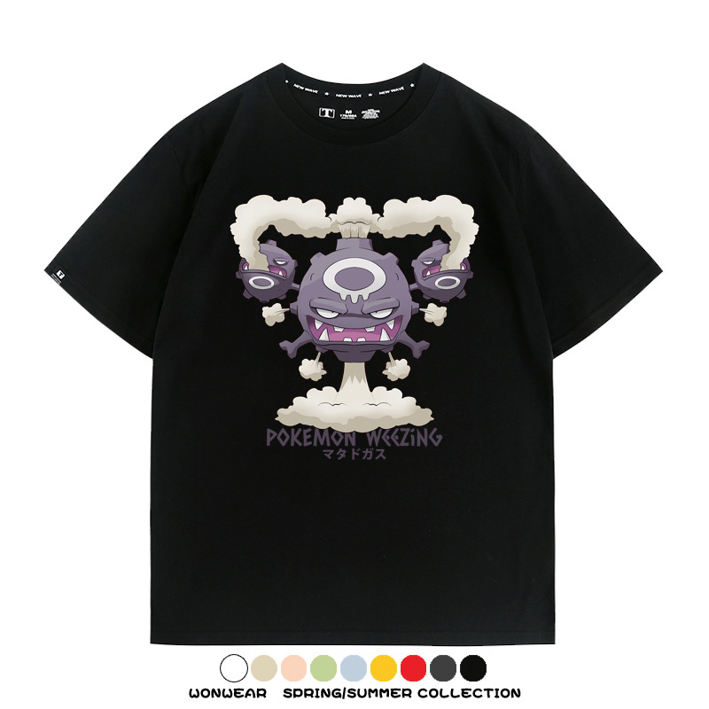 精靈寶可夢聯名雙彈瓦斯卡通t恤衫夏季動漫周邊短袖上衣服半袖男