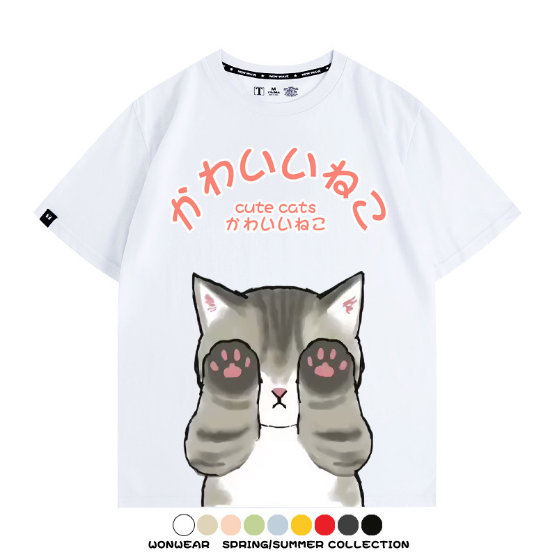日系印花貓貓捂臉周邊短袖T恤